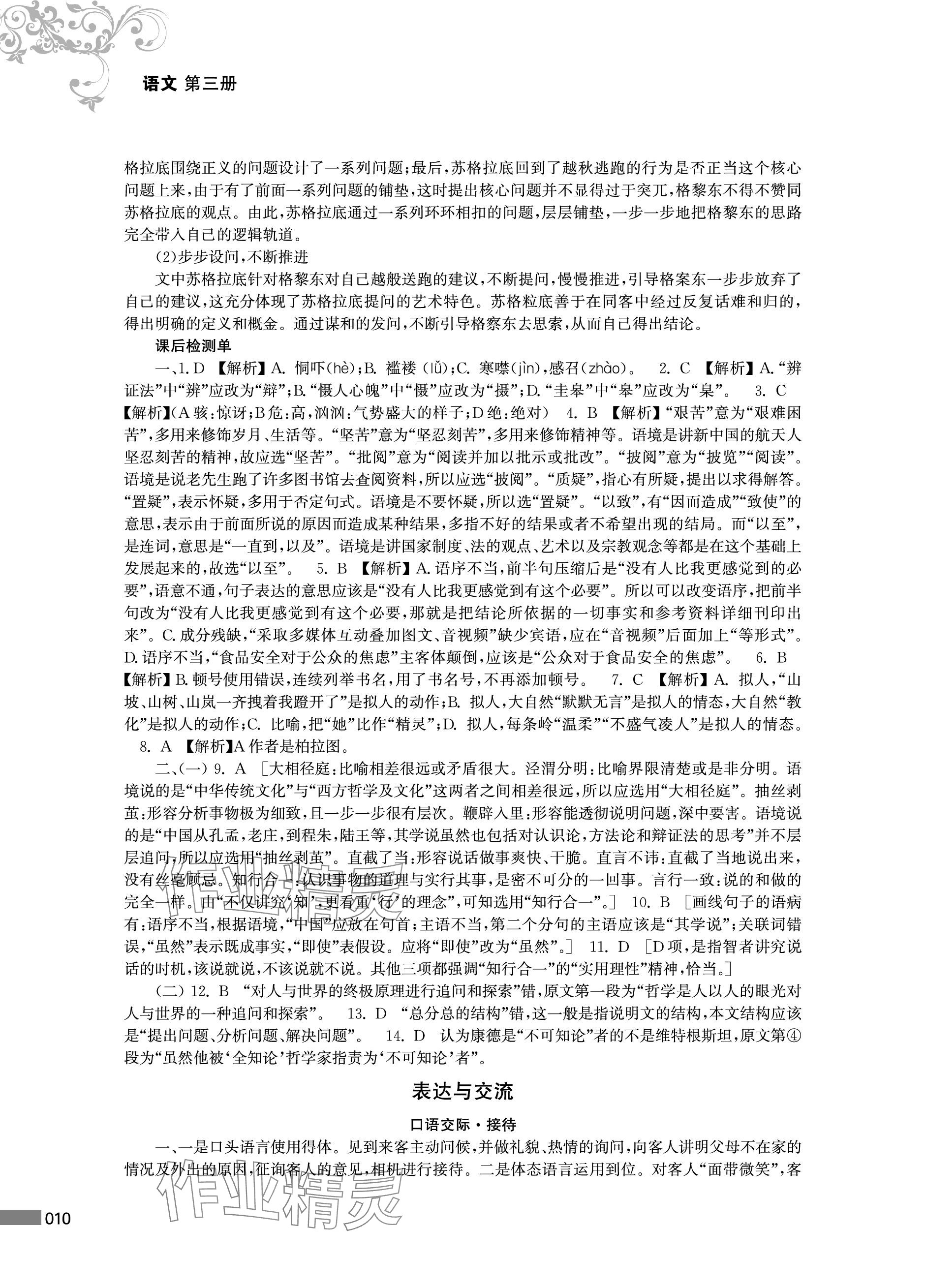 注:目前有些书本章节名称可能整理的还不是很完善,但都是按照顺序排列的,请同学们按照顺序仔细查找。练习册 2023年对口单招一点通中职语文第三册 答案主要是用来给同学们做完题方便对答案用的,请勿直接抄袭。