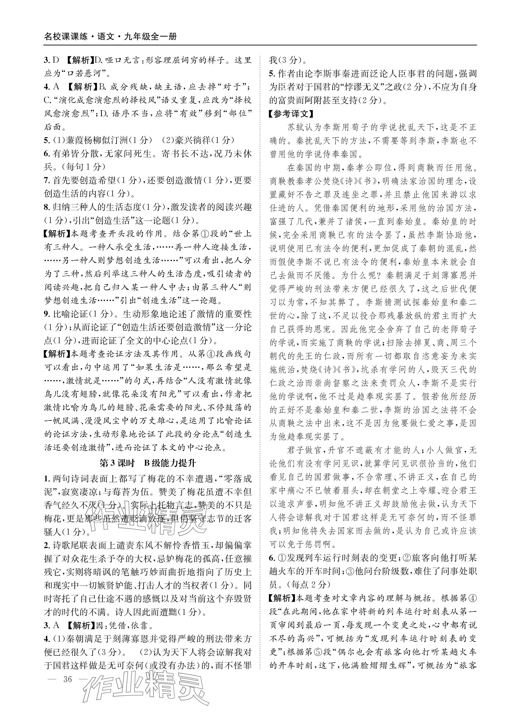 注:目前有些书本章节名称可能整理的还不是很完善,但都是按照顺序排列的,请同学们按照顺序仔细查找。练习册 2023年名校课课练九年级语文全一册人教版 答案主要是用来给同学们做完题方便对答案用的,请勿直接抄袭。
