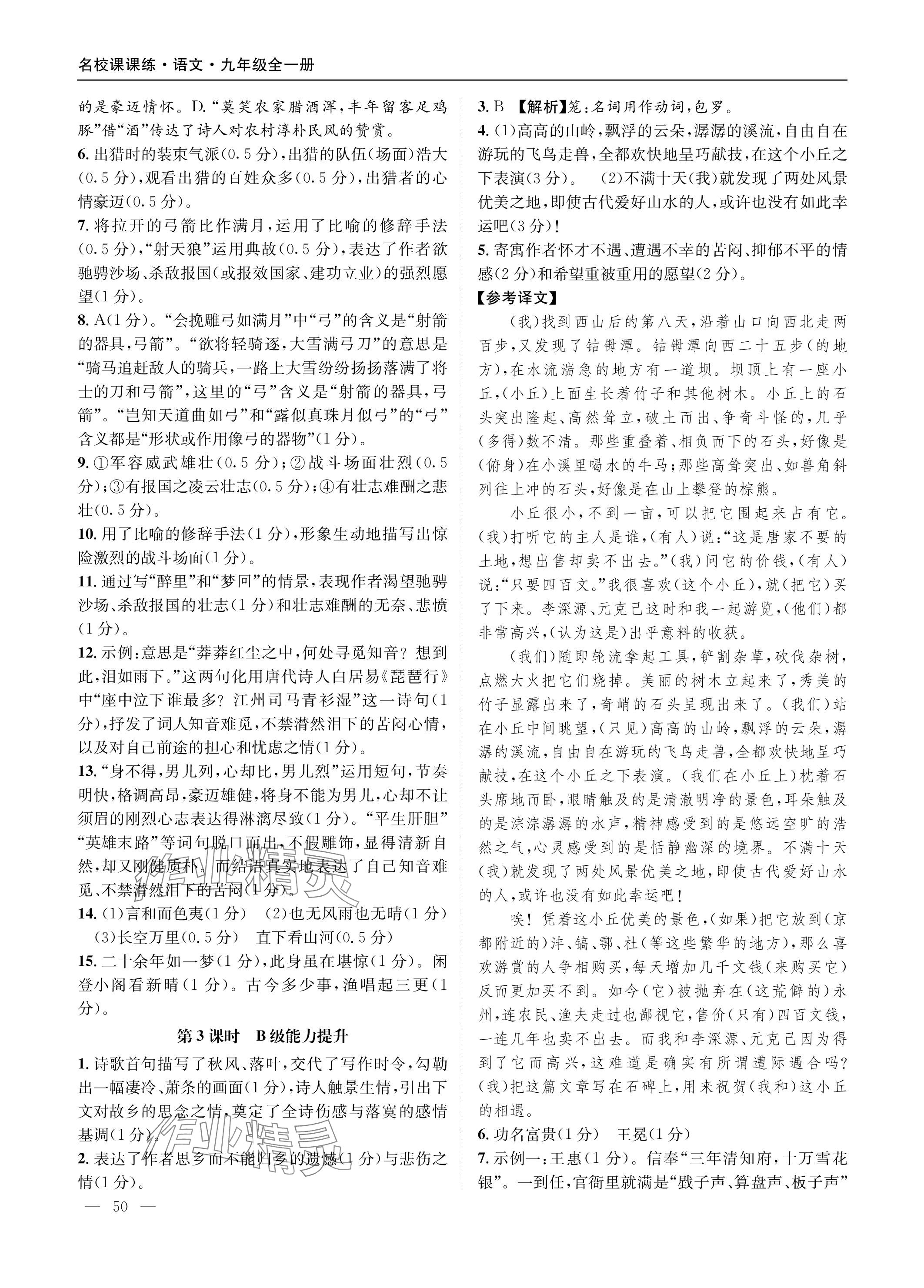 注:目前有些书本章节名称可能整理的还不是很完善,但都是按照顺序排列的,请同学们按照顺序仔细查找。练习册 2023年名校课课练九年级语文全一册人教版 答案主要是用来给同学们做完题方便对答案用的,请勿直接抄袭。