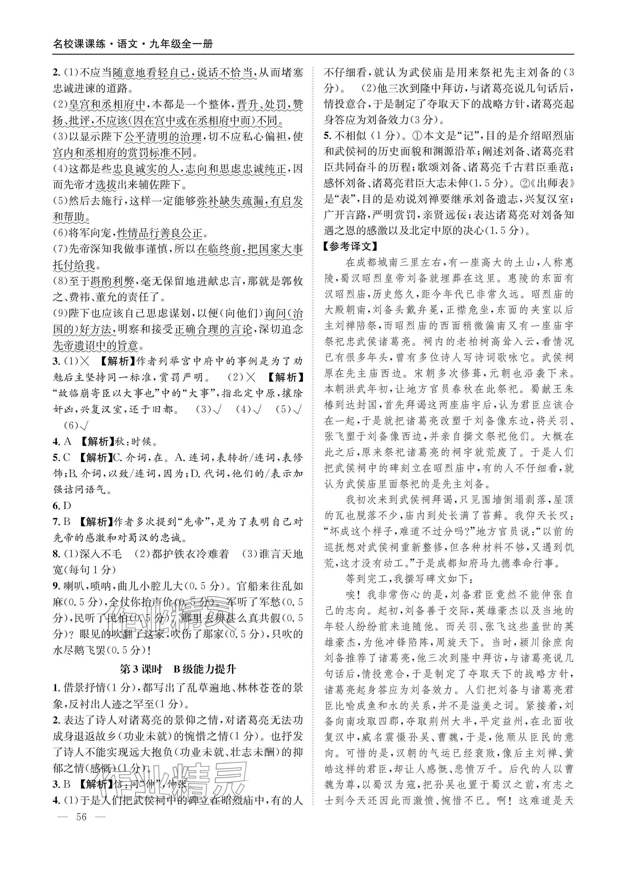 注:目前有些书本章节名称可能整理的还不是很完善,但都是按照顺序排列的,请同学们按照顺序仔细查找。练习册 2023年名校课课练九年级语文全一册人教版 答案主要是用来给同学们做完题方便对答案用的,请勿直接抄袭。