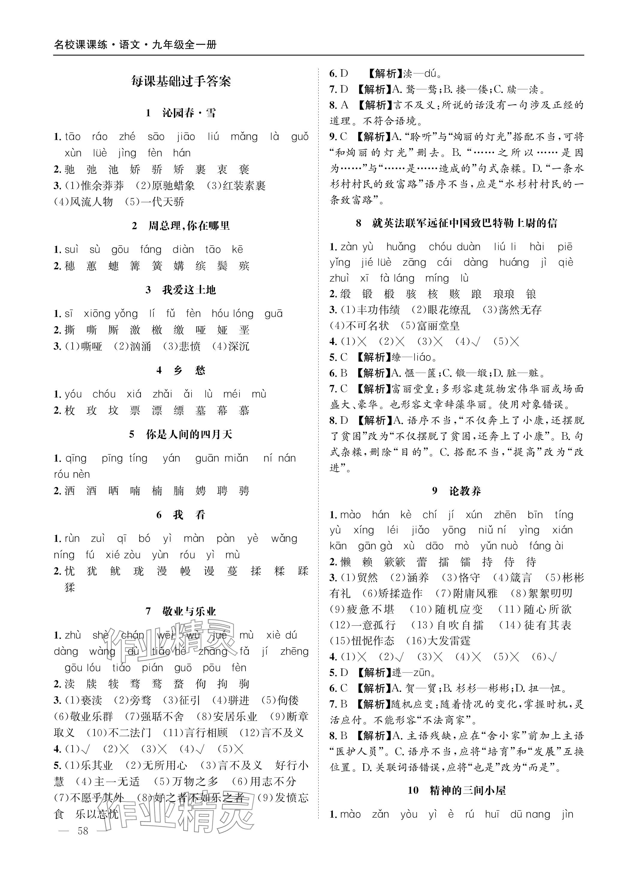 注:目前有些书本章节名称可能整理的还不是很完善,但都是按照顺序排列的,请同学们按照顺序仔细查找。练习册 2023年名校课课练九年级语文全一册人教版 答案主要是用来给同学们做完题方便对答案用的,请勿直接抄袭。