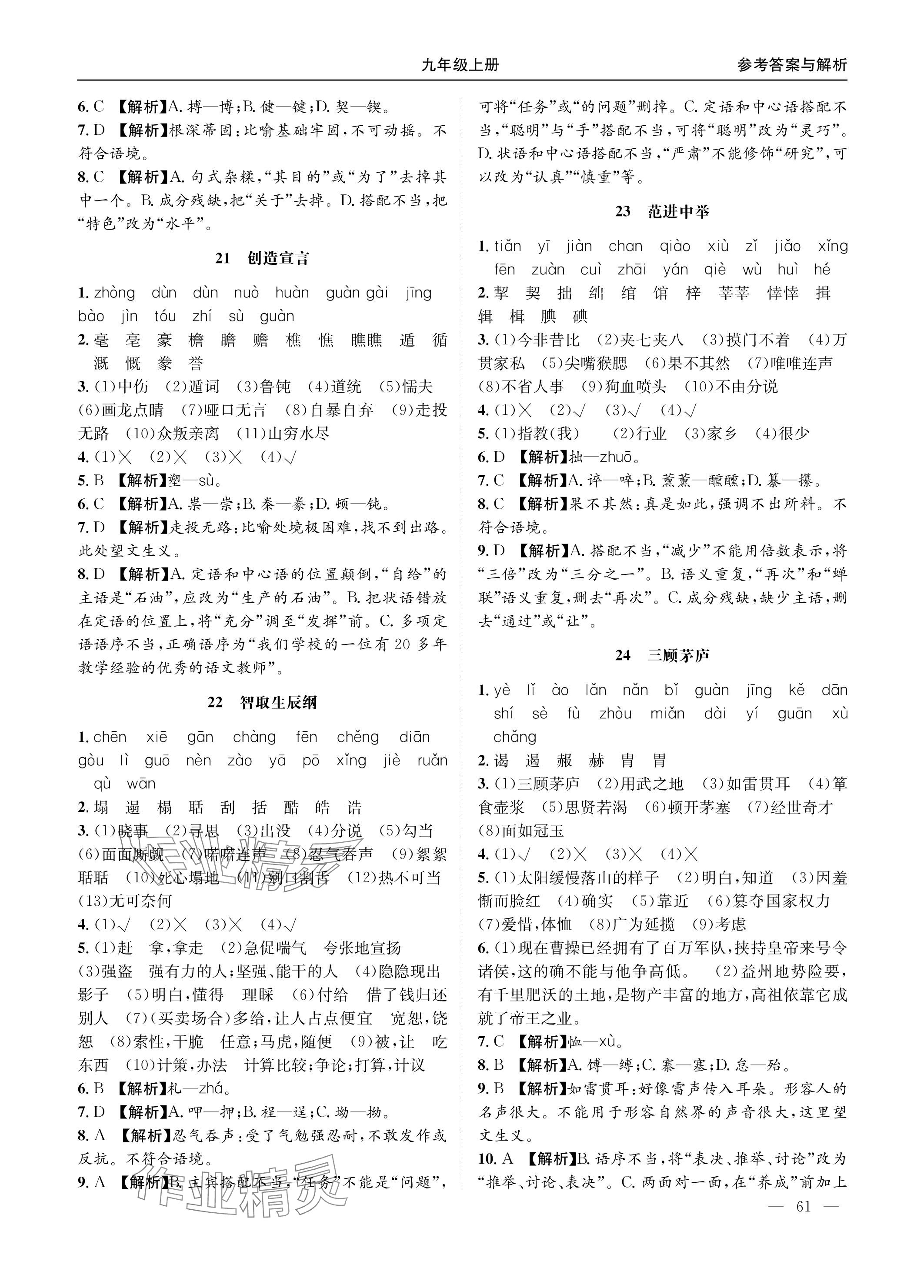 注:目前有些书本章节名称可能整理的还不是很完善,但都是按照顺序排列的,请同学们按照顺序仔细查找。练习册 2023年名校课课练九年级语文全一册人教版 答案主要是用来给同学们做完题方便对答案用的,请勿直接抄袭。