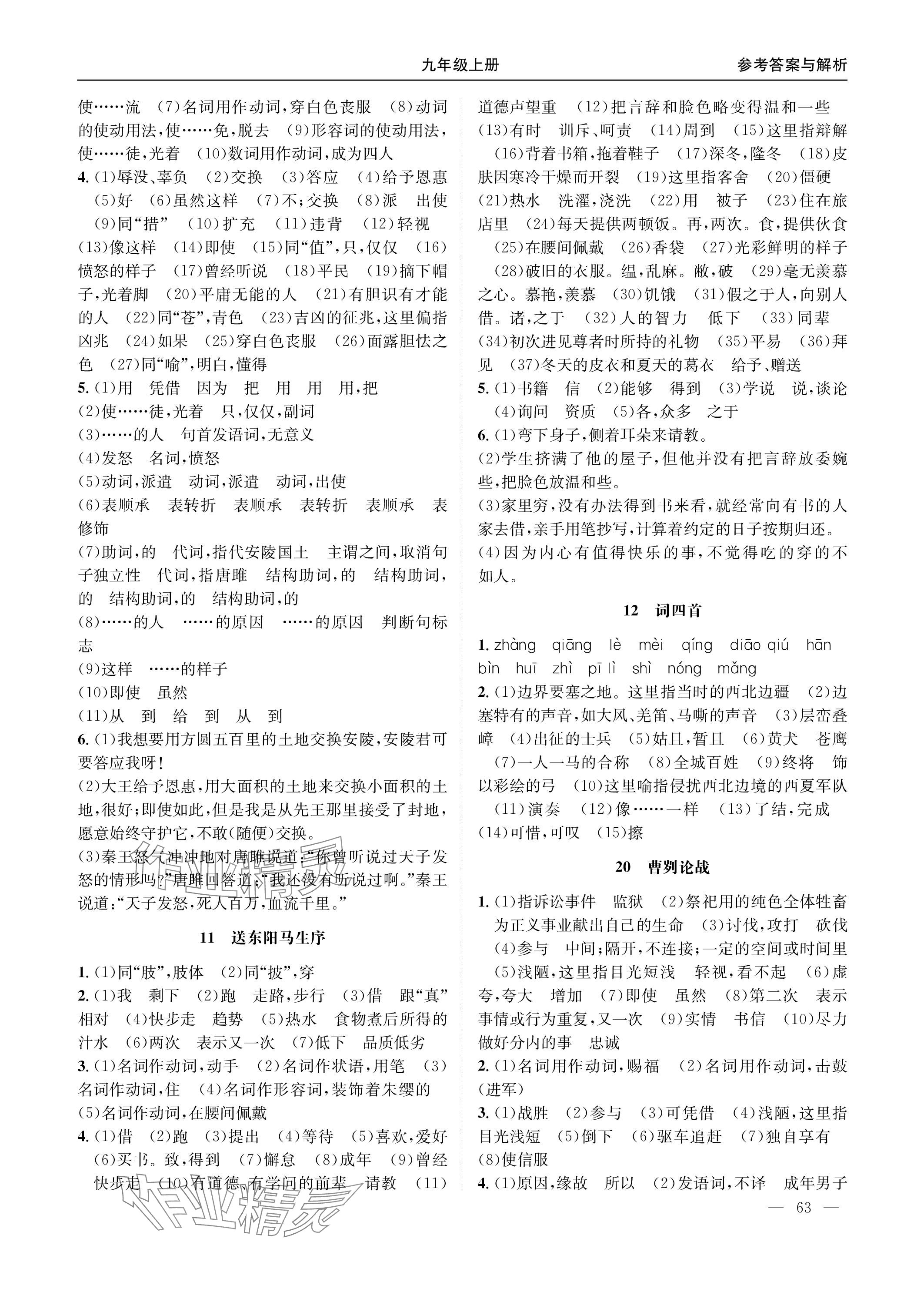 注:目前有些书本章节名称可能整理的还不是很完善,但都是按照顺序排列的,请同学们按照顺序仔细查找。练习册 2023年名校课课练九年级语文全一册人教版 答案主要是用来给同学们做完题方便对答案用的,请勿直接抄袭。