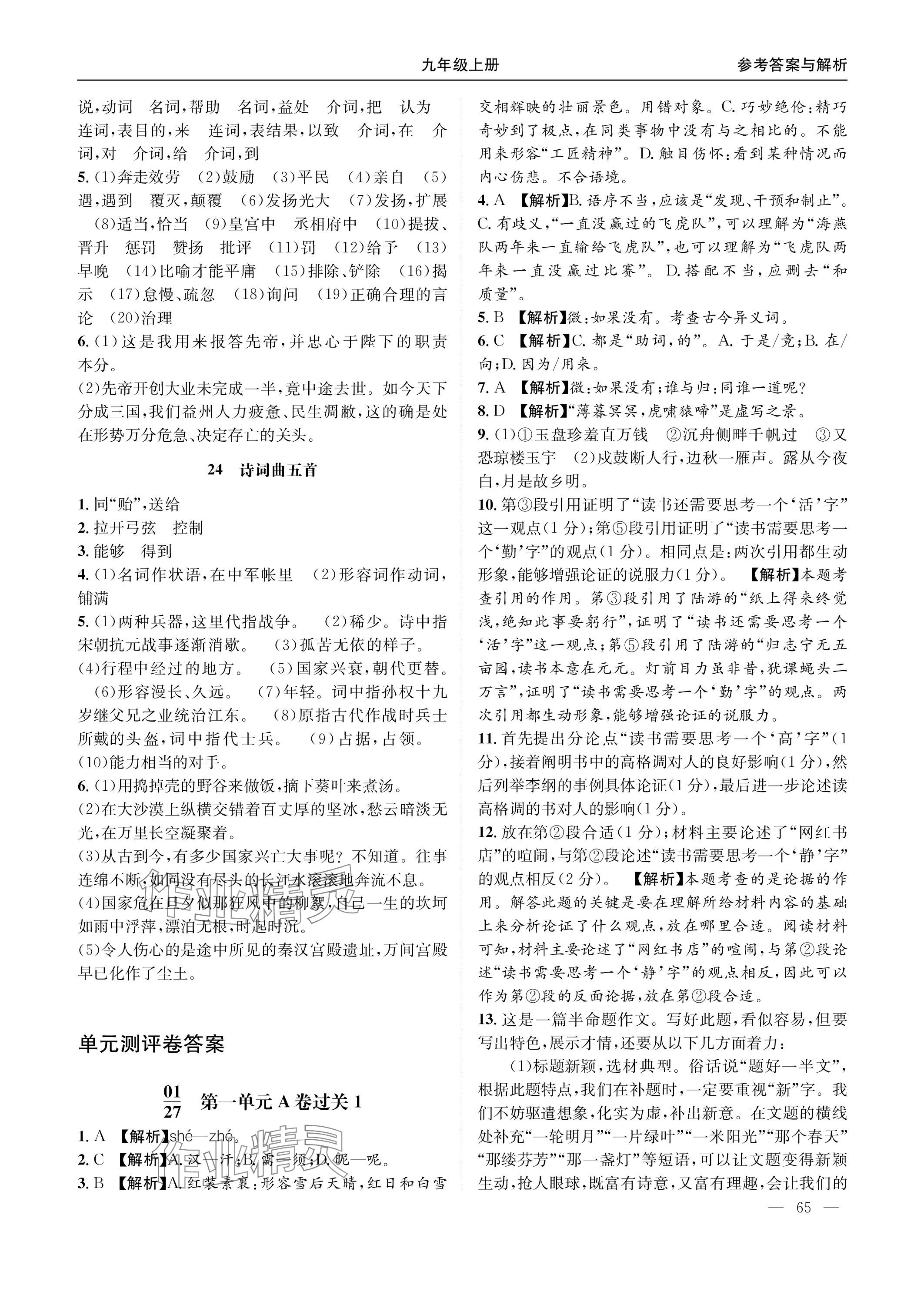 注:目前有些书本章节名称可能整理的还不是很完善,但都是按照顺序排列的,请同学们按照顺序仔细查找。练习册 2023年名校课课练九年级语文全一册人教版 答案主要是用来给同学们做完题方便对答案用的,请勿直接抄袭。