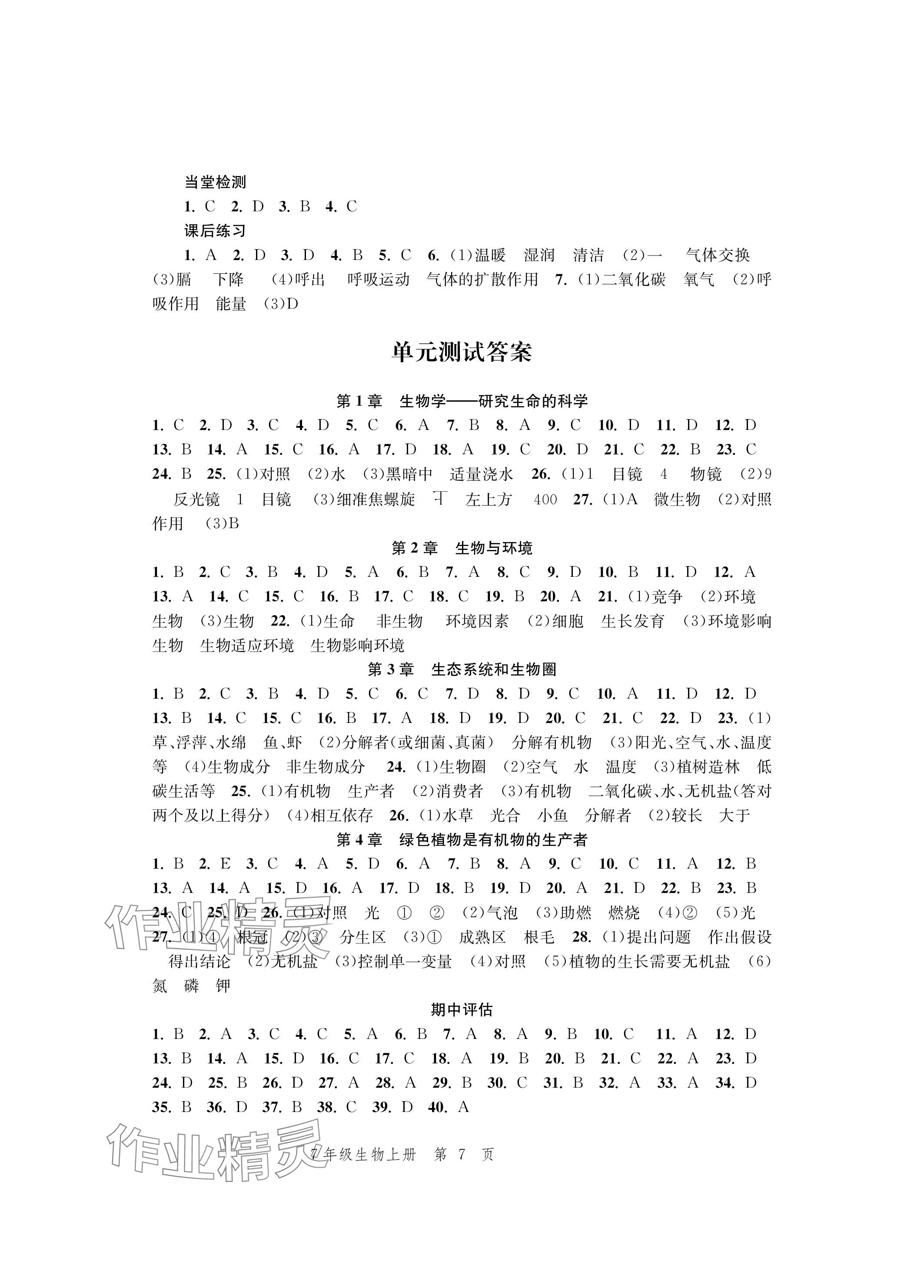 注:目前有些书本章节名称可能整理的还不是很完善,但都是按照顺序排列的,请同学们按照顺序仔细查找。练习册 2023年导学与评价方案七年级生物上册苏科版 答案主要是用来给同学们做完题方便对答案用的,请勿直接抄袭。