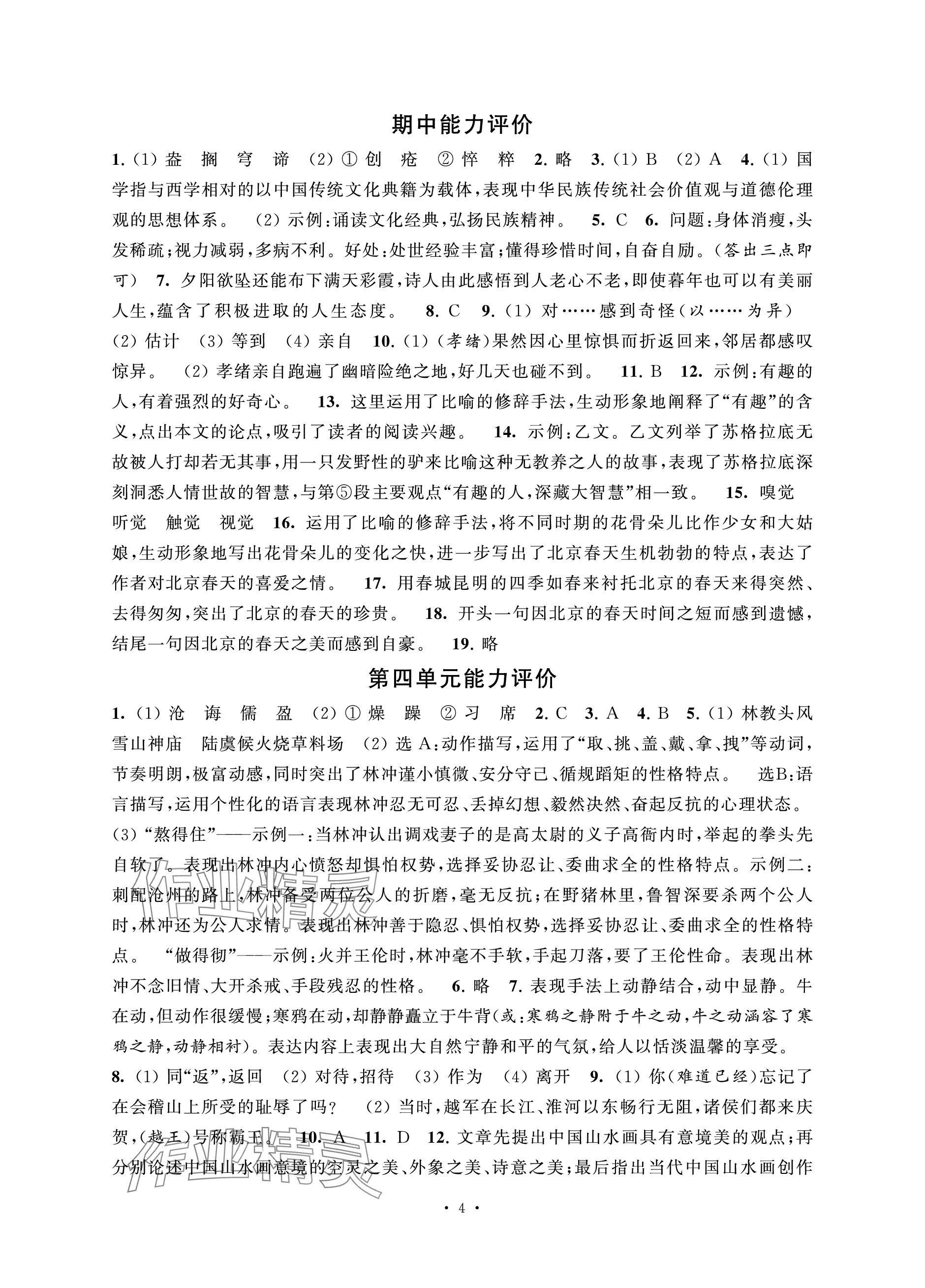 注:目前有些书本章节名称可能整理的还不是很完善,但都是按照顺序排列的,请同学们按照顺序仔细查找。练习册 2023年配套单元评价九年级语文上册人教版 答案主要是用来给同学们做完题方便对答案用的,请勿直接抄袭。