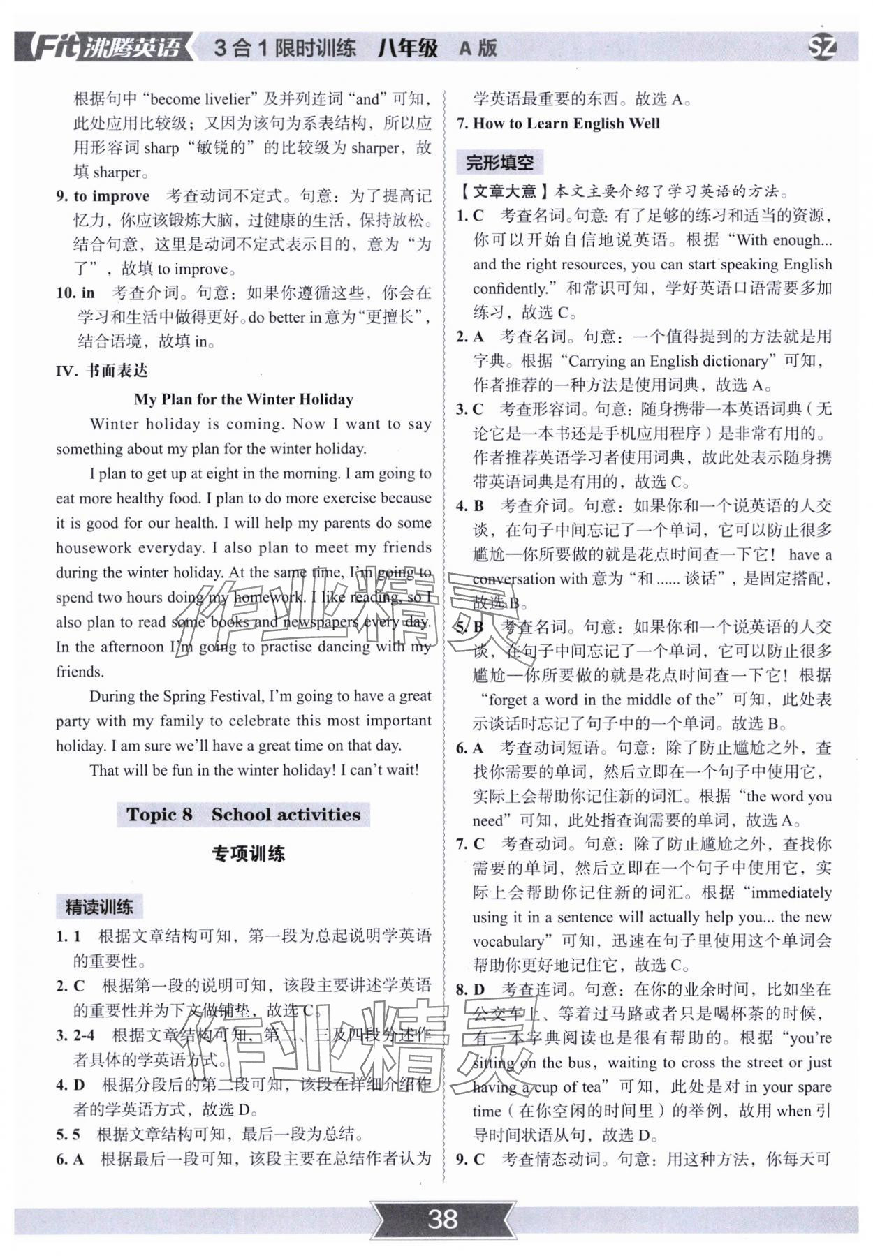 注:目前有些书本章节名称可能整理的还不是很完善,但都是按照顺序排列的,请同学们按照顺序仔细查找。练习册 2023年沸腾英语3合1限时训练八年级深圳专版A版 答案主要是用来给同学们做完题方便对答案用的,请勿直接抄袭。