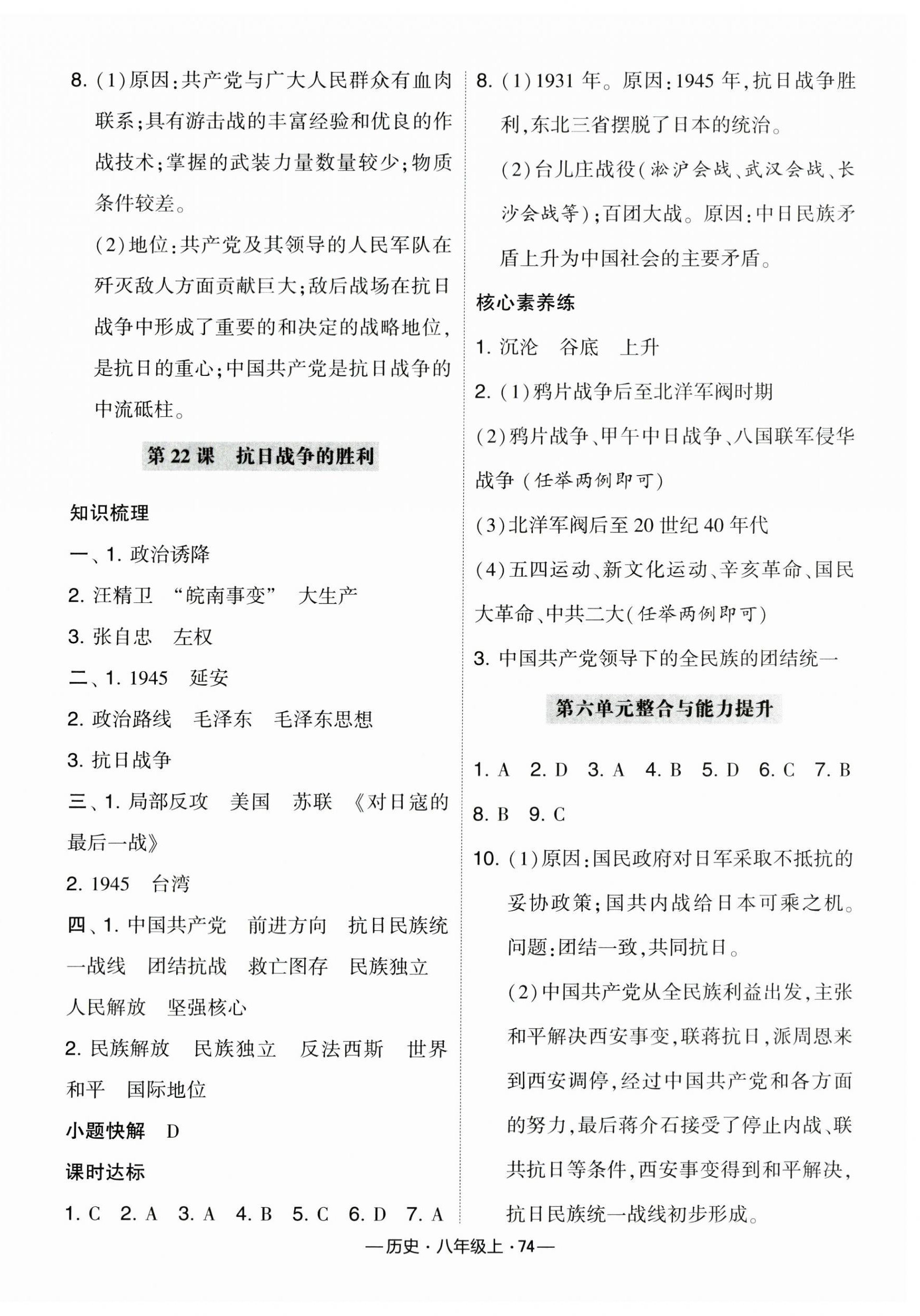 注:目前有些书本章节名称可能整理的还不是很完善,但都是按照顺序排列的,请同学们按照顺序仔细查找。练习册 2023年经纶学典课时作业八年级历史上册人教版 答案主要是用来给同学们做完题方便对答案用的,请勿直接抄袭。