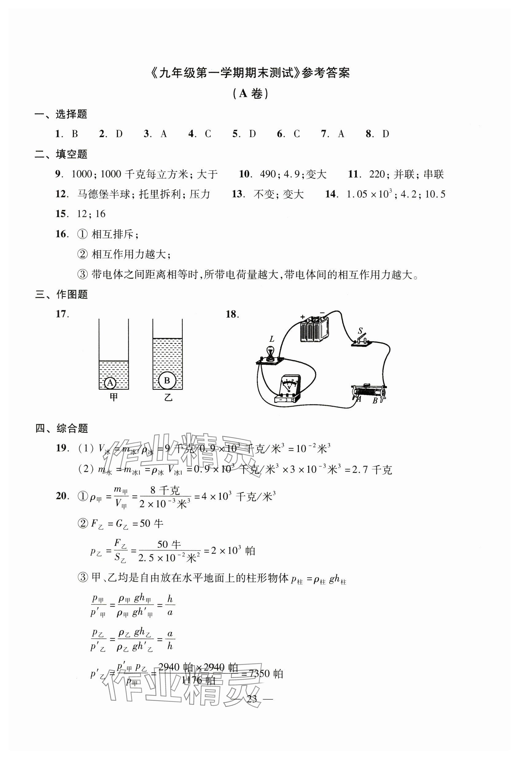 注:目前有些书本章节名称可能整理的还不是很完善,但都是按照顺序排列的,请同学们按照顺序仔细查找。练习册 2023年双基过关堂堂练九年级物理全一册沪教版五四制 答案主要是用来给同学们做完题方便对答案用的,请勿直接抄袭。