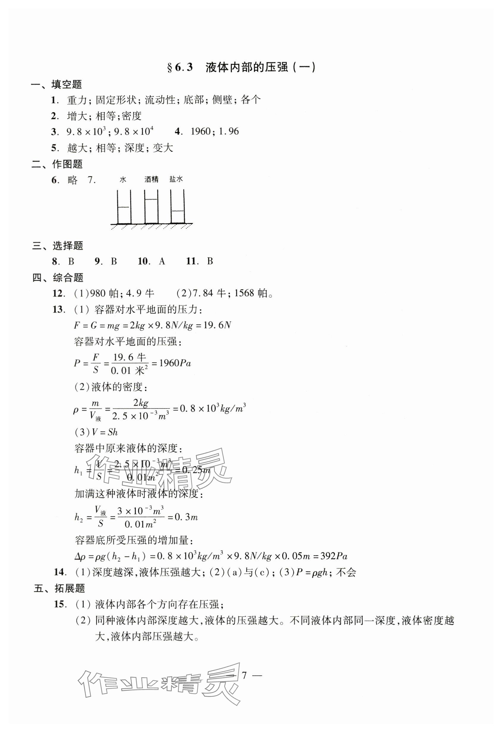 2023年双基过关堂堂练九年级物理全一册沪教版五四制