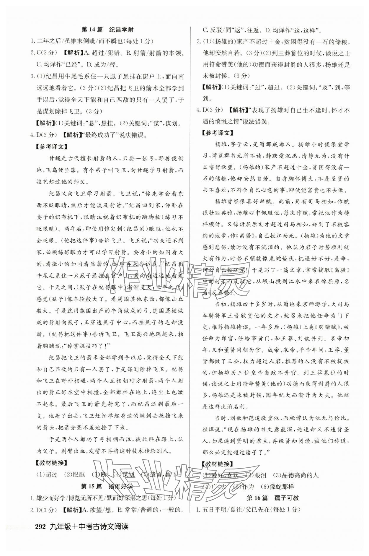 2023年启东中学作业本九年级加中考古诗文阅读徐州专版
