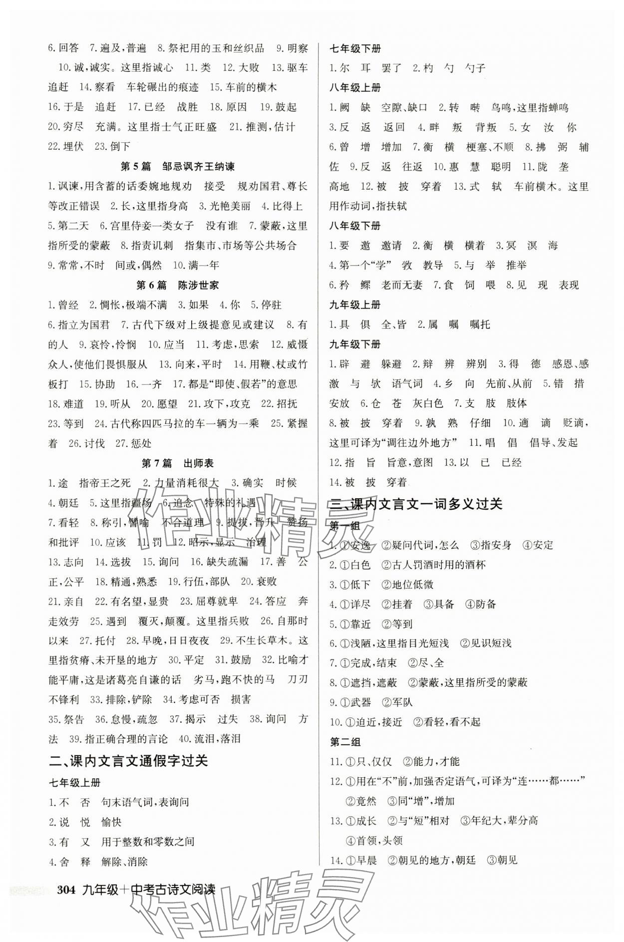 2023年启东中学作业本九年级加中考古诗文阅读徐州专版