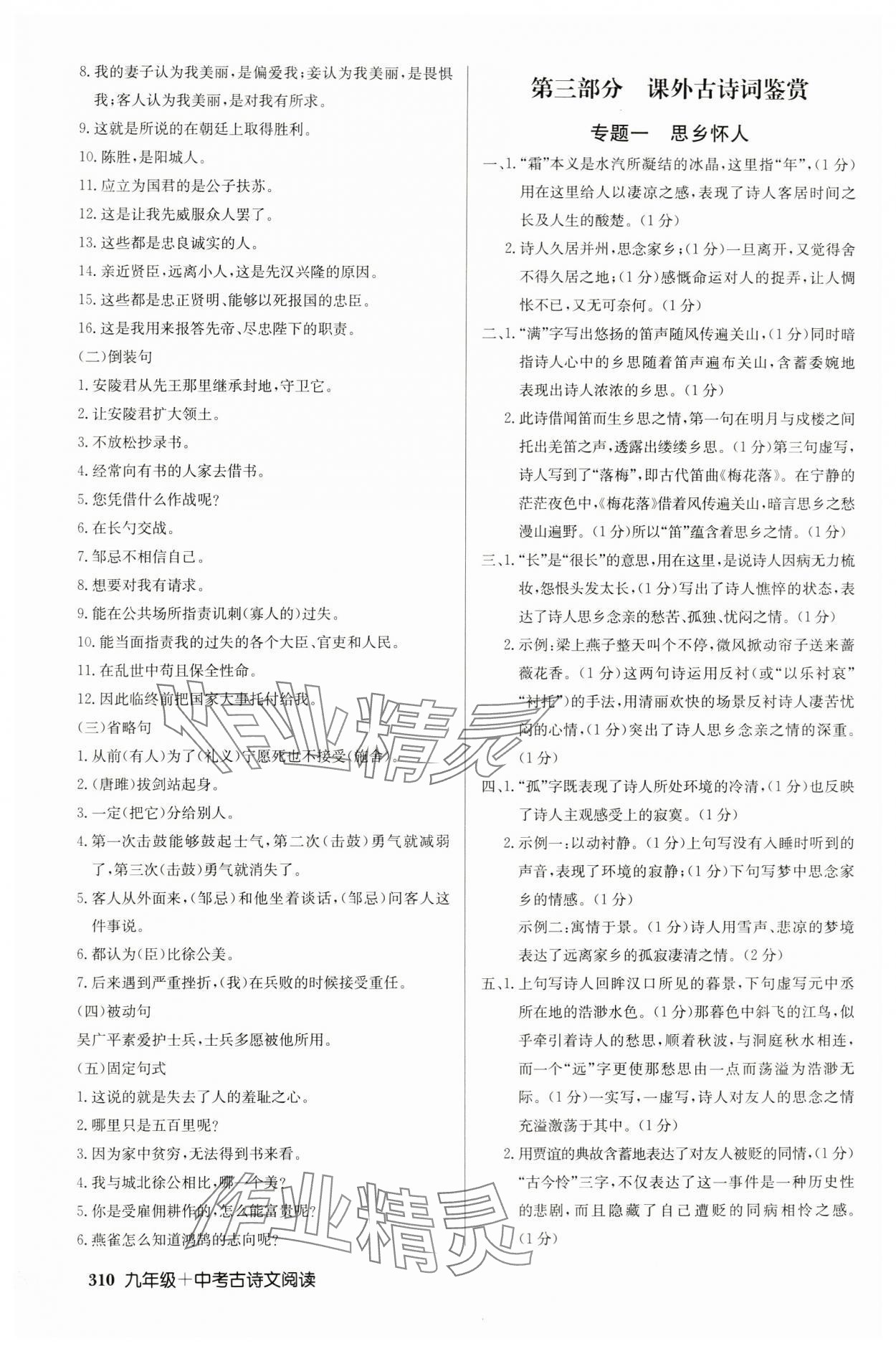 2023年启东中学作业本九年级加中考古诗文阅读徐州专版