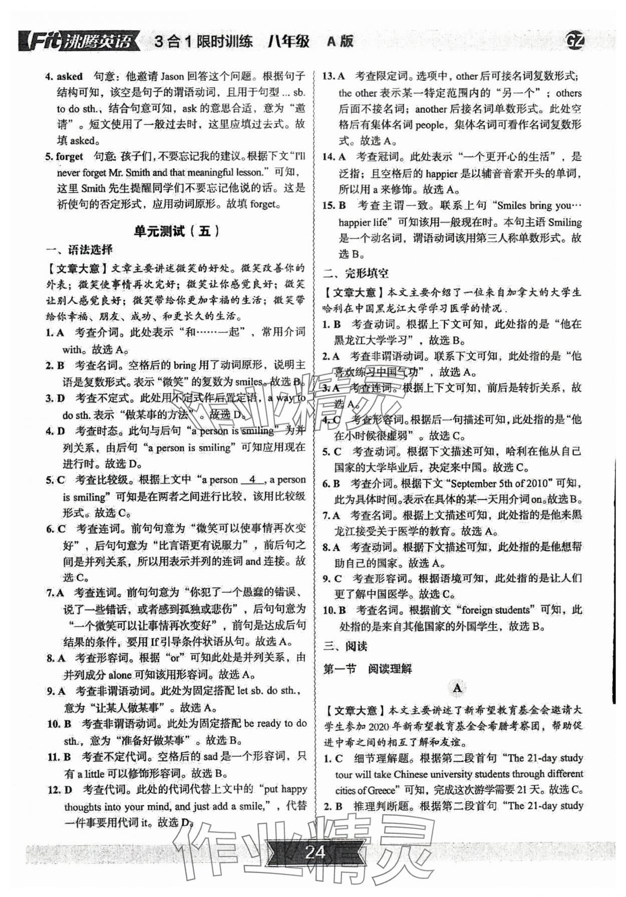 注:目前有些书本章节名称可能整理的还不是很完善,但都是按照顺序排列的,请同学们按照顺序仔细查找。练习册 2023年沸腾英语3合1限时训练八年级英语广州专版 答案主要是用来给同学们做完题方便对答案用的,请勿直接抄袭。