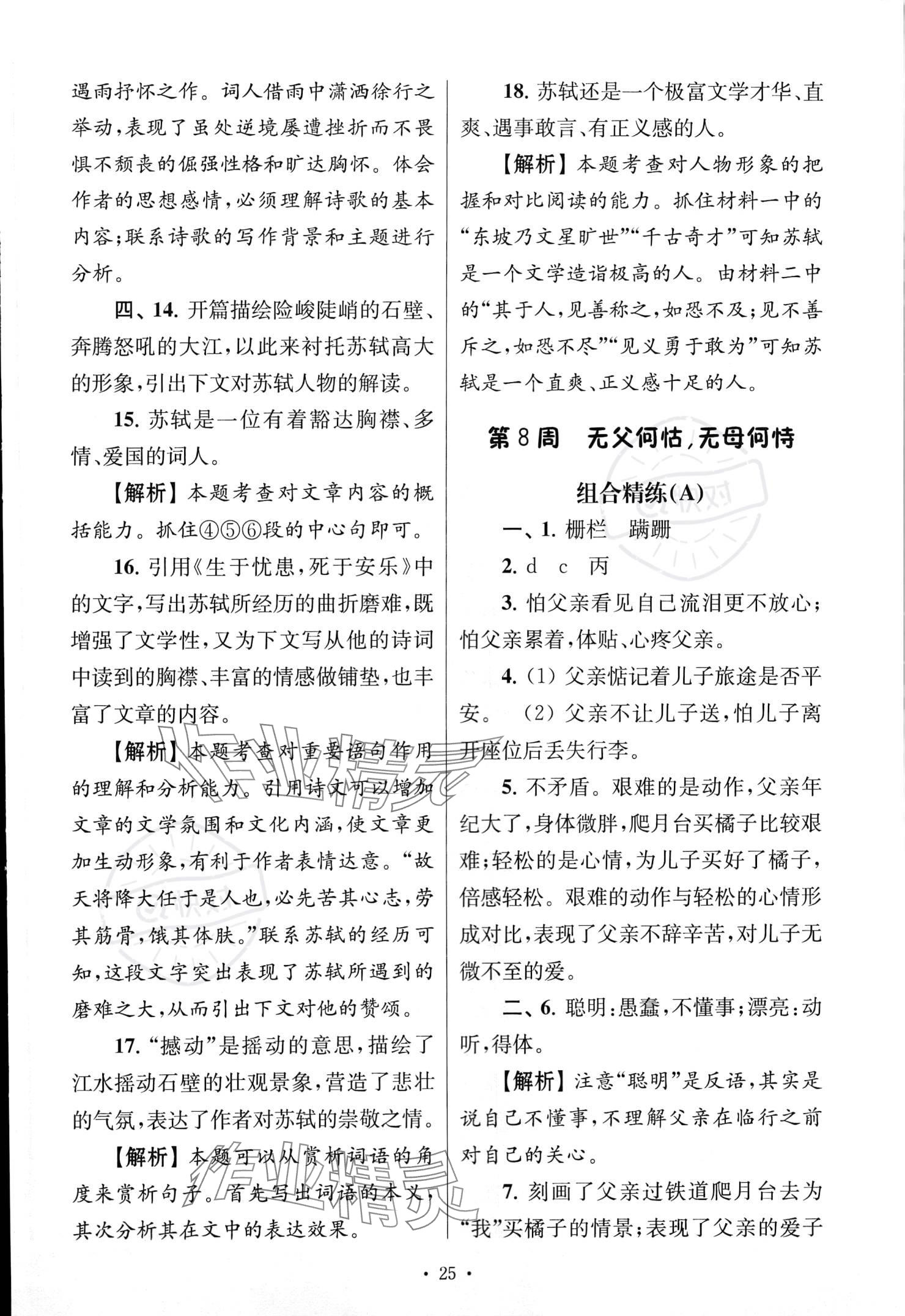 2022年南大教辅高分阅读组合阅读周周练八年级语文上册人教版