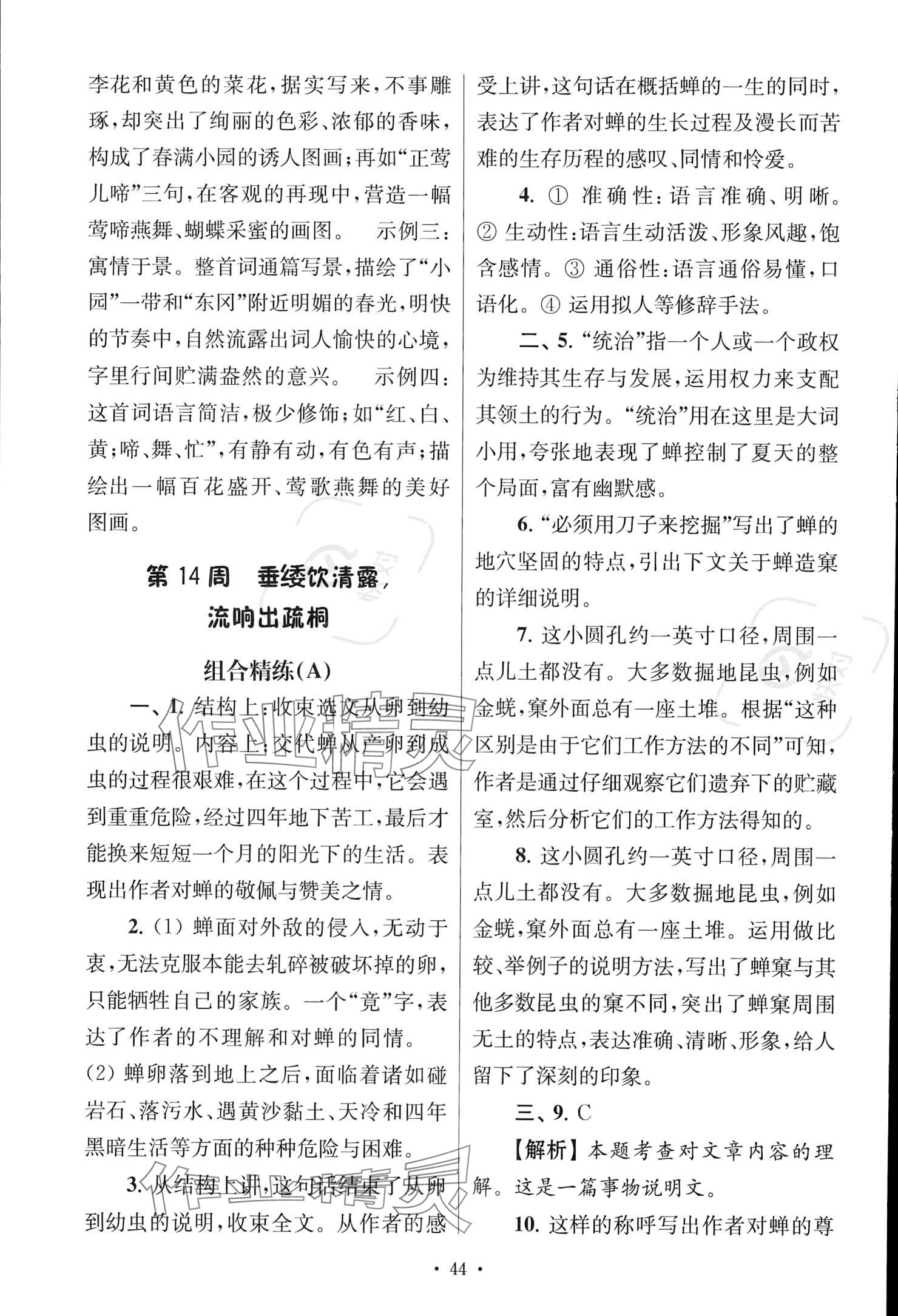 注:目前有些书本章节名称可能整理的还不是很完善,但都是按照顺序排列的,请同学们按照顺序仔细查找。练习册 2022年南大教辅高分阅读组合阅读周周练八年级语文上册人教版 答案主要是用来给同学们做完题方便对答案用的,请勿直接抄袭。