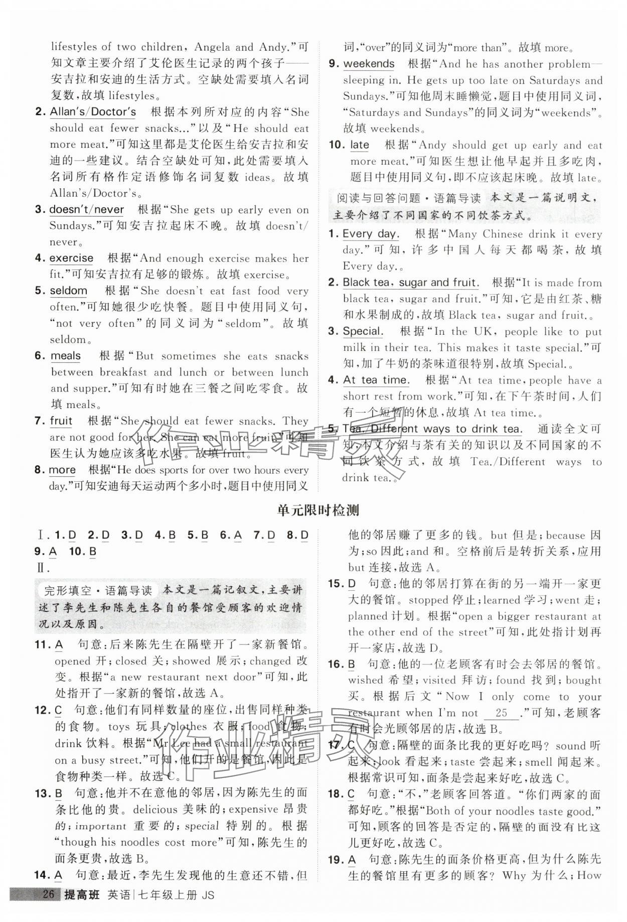 注:目前有些书本章节名称可能整理的还不是很完善,但都是按照顺序排列的,请同学们按照顺序仔细查找。练习册 2023年经纶学典提高班七年级英语上册译林版 答案主要是用来给同学们做完题方便对答案用的,请勿直接抄袭。