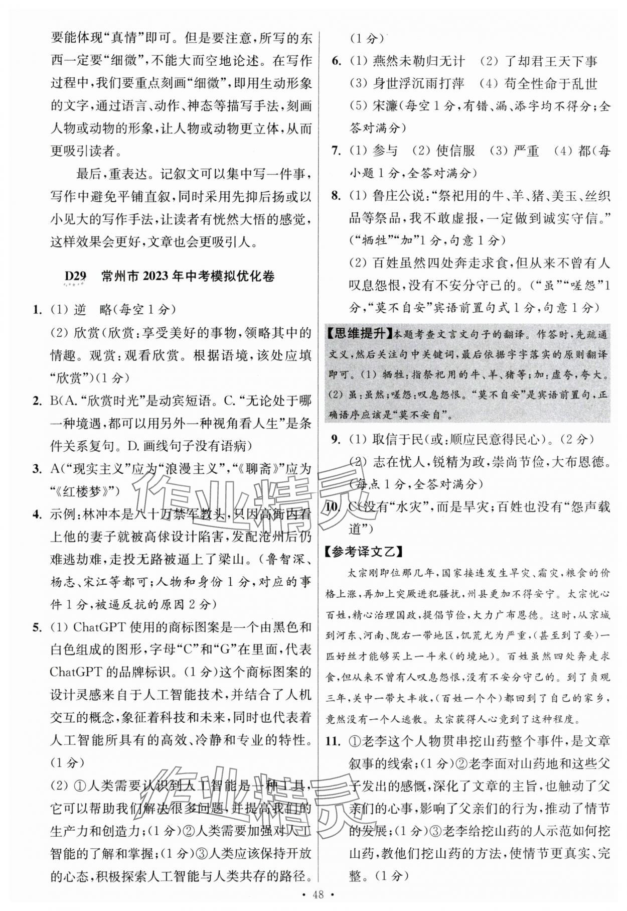 2024年江苏中考模拟试卷汇编优化38套语文提优版