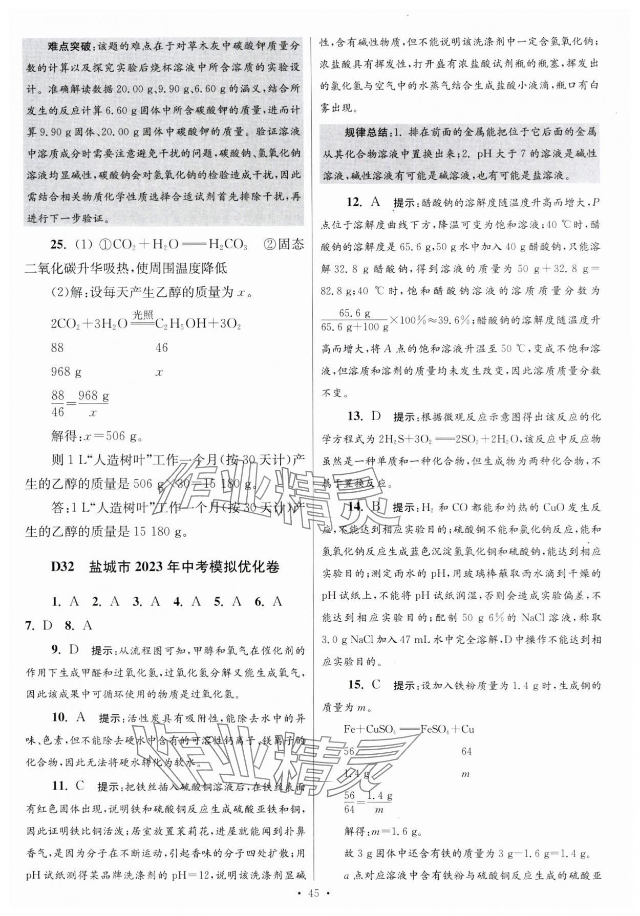 2024年江苏中考模拟试卷汇编优化38套化学提优版