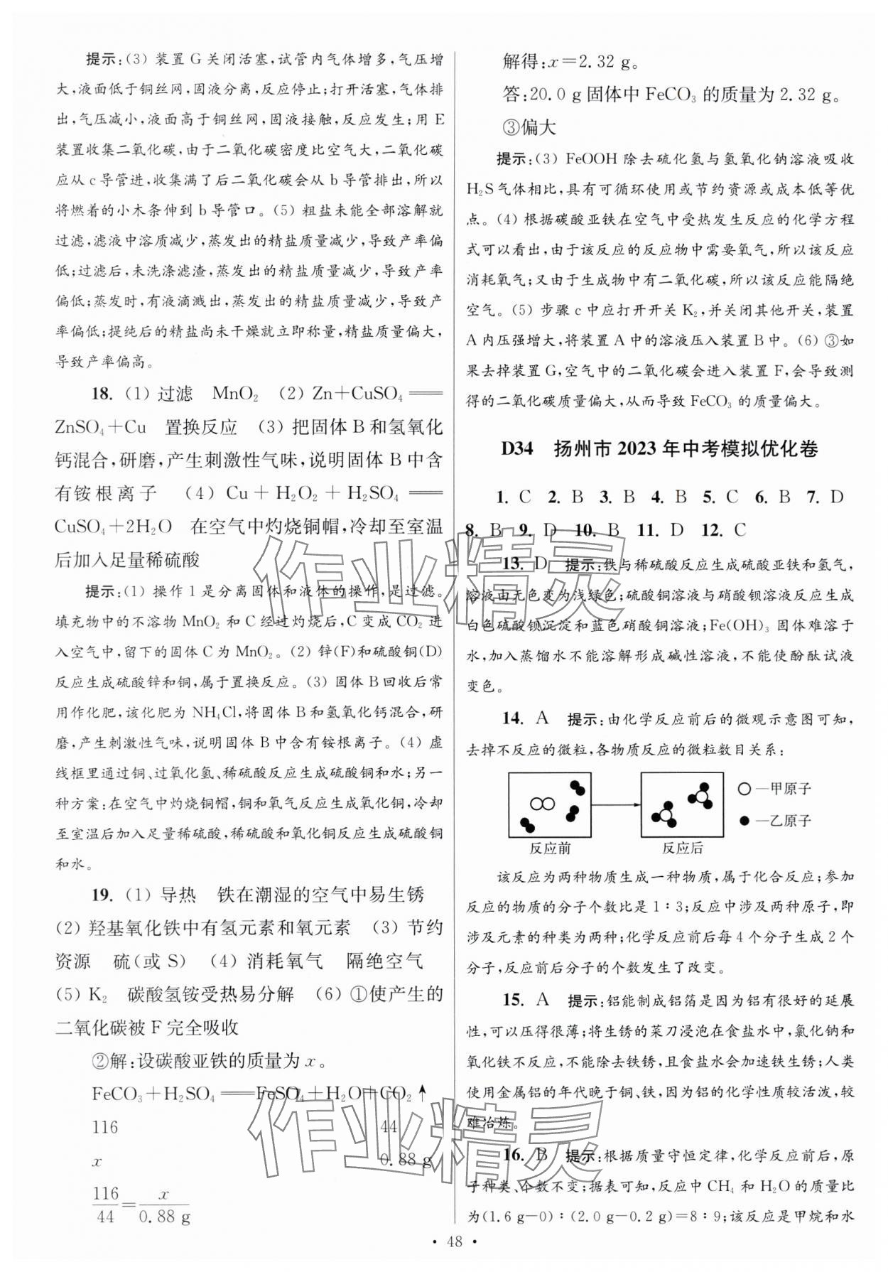 2024年江苏中考模拟试卷汇编优化38套化学提优版