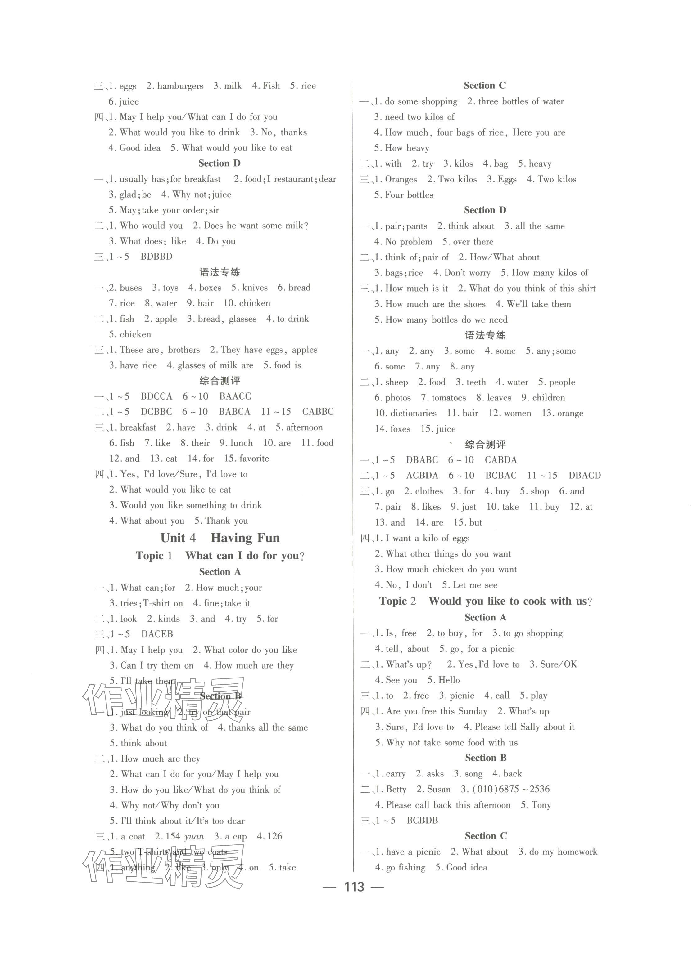 注:目前有些书本章节名称可能整理的还不是很完善,但都是按照顺序排列的,请同学们按照顺序仔细查找。练习册 2023年夺冠新课堂课时同步七年级英语上册仁爱版 答案主要是用来给同学们做完题方便对答案用的,请勿直接抄袭。