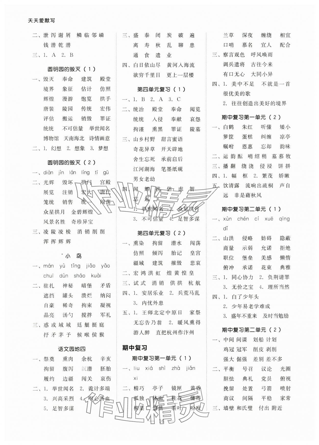 注:目前有些书本章节名称可能整理的还不是很完善,但都是按照顺序排列的,请同学们按照顺序仔细查找。练习册 2023年天天爱默写五年级语文上册人教版 答案主要是用来给同学们做完题方便对答案用的,请勿直接抄袭。