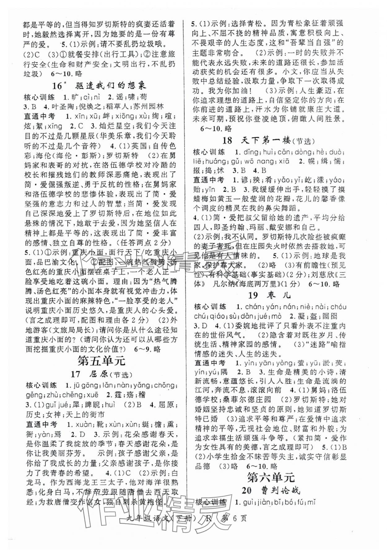 注:目前有些书本章节名称可能整理的还不是很完善,但都是按照顺序排列的,请同学们按照顺序仔细查找。练习册 2024年启航新课堂九年级语文下册人教版 答案主要是用来给同学们做完题方便对答案用的,请勿直接抄袭。
