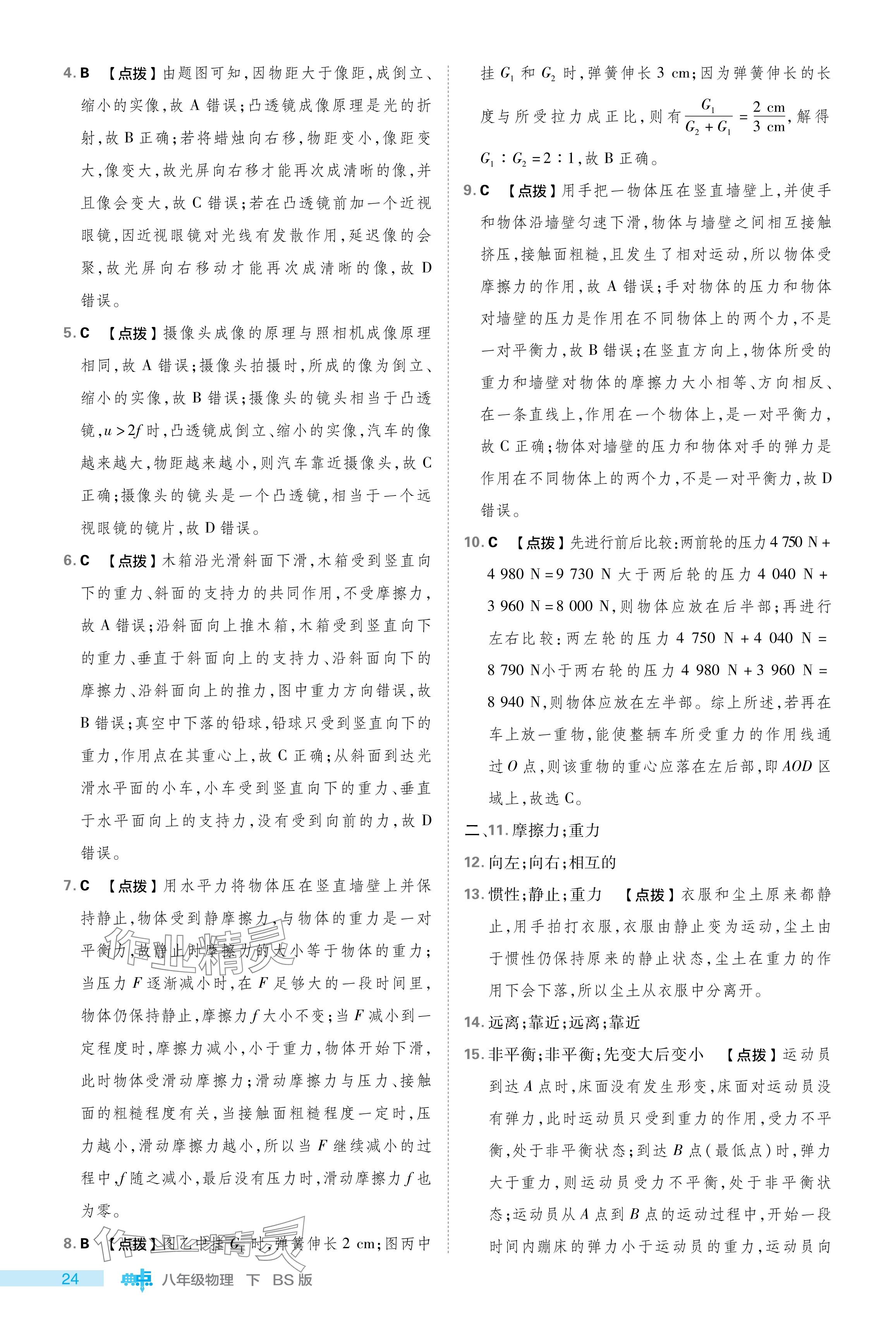 注:目前有些书本章节名称可能整理的还不是很完善,但都是按照顺序排列的,请同学们按照顺序仔细查找。练习册 2024年综合应用创新题典中点八年级物理下册北师大版 答案主要是用来给同学们做完题方便对答案用的,请勿直接抄袭。