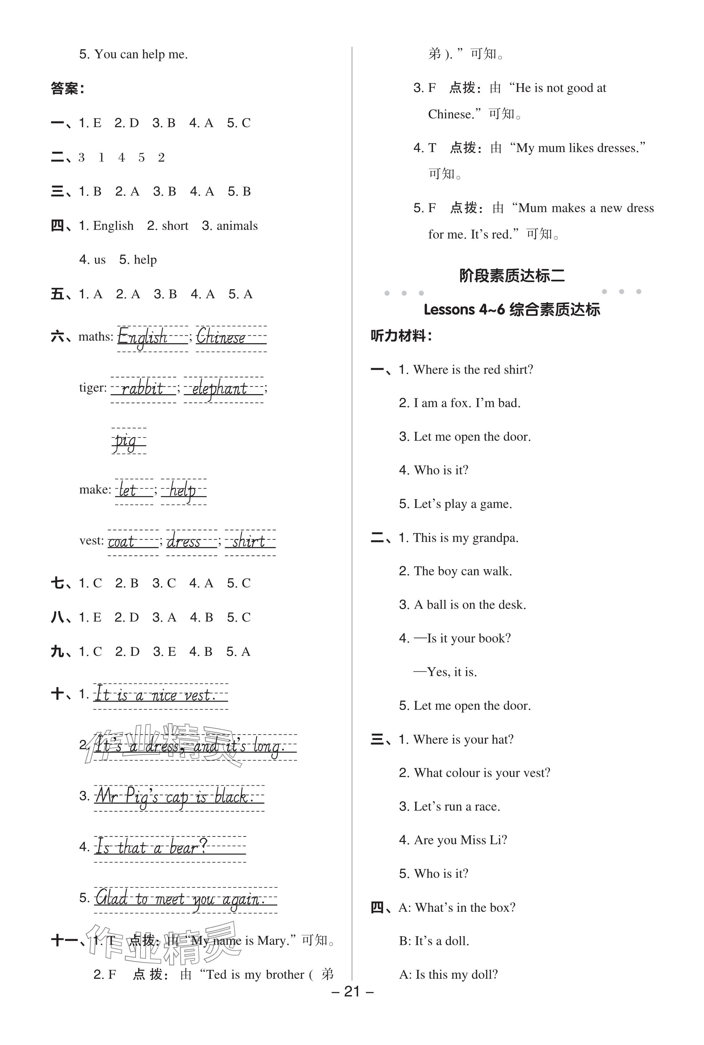注:目前有些书本章节名称可能整理的还不是很完善,但都是按照顺序排列的,请同学们按照顺序仔细查找。练习册 2024年综合应用创新题典中点三年级英语下册科普版 答案主要是用来给同学们做完题方便对答案用的,请勿直接抄袭。