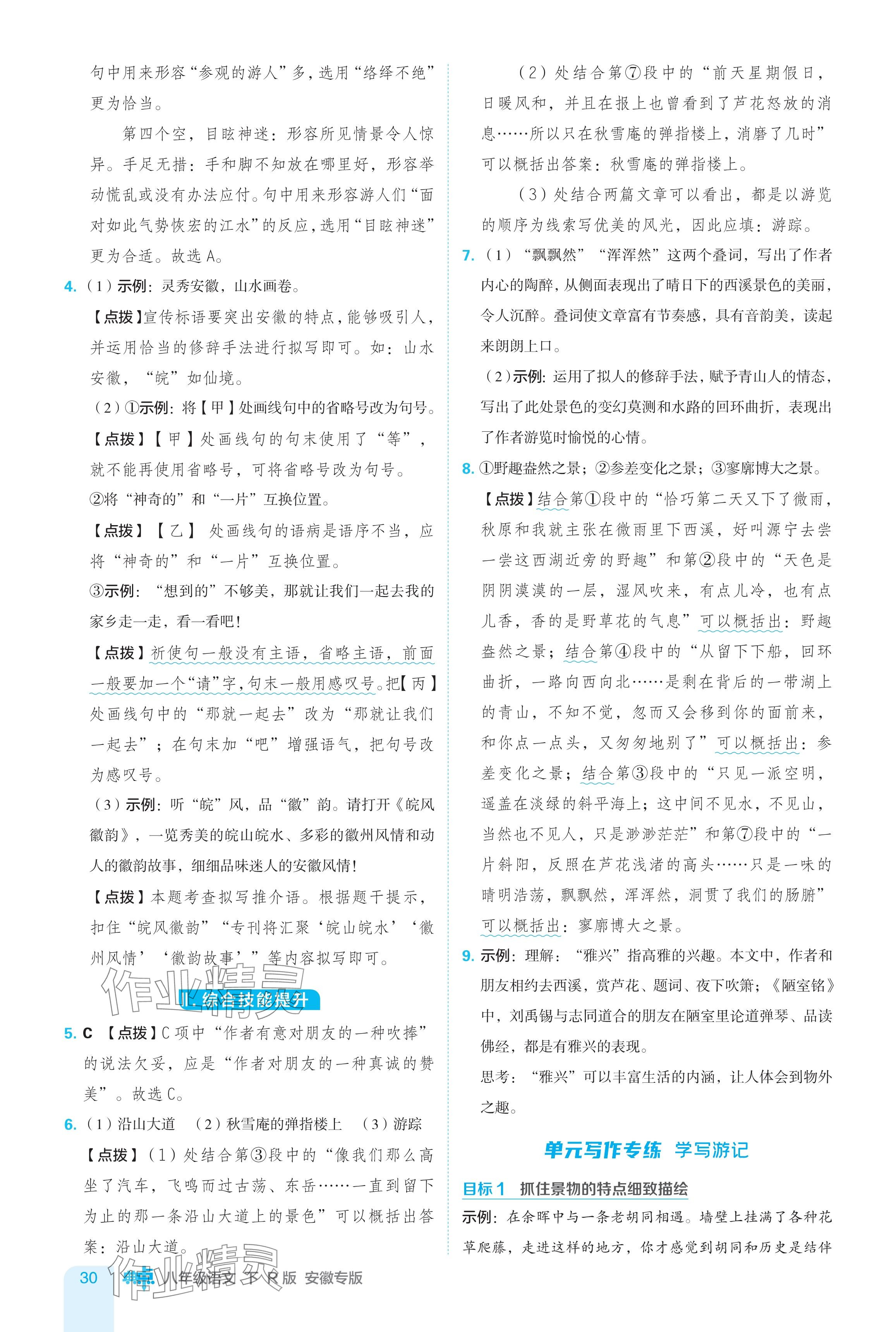 注:目前有些书本章节名称可能整理的还不是很完善,但都是按照顺序排列的,请同学们按照顺序仔细查找。练习册 2024年综合应用创新题典中点八年级语文下册人教版安徽专版 答案主要是用来给同学们做完题方便对答案用的,请勿直接抄袭。
