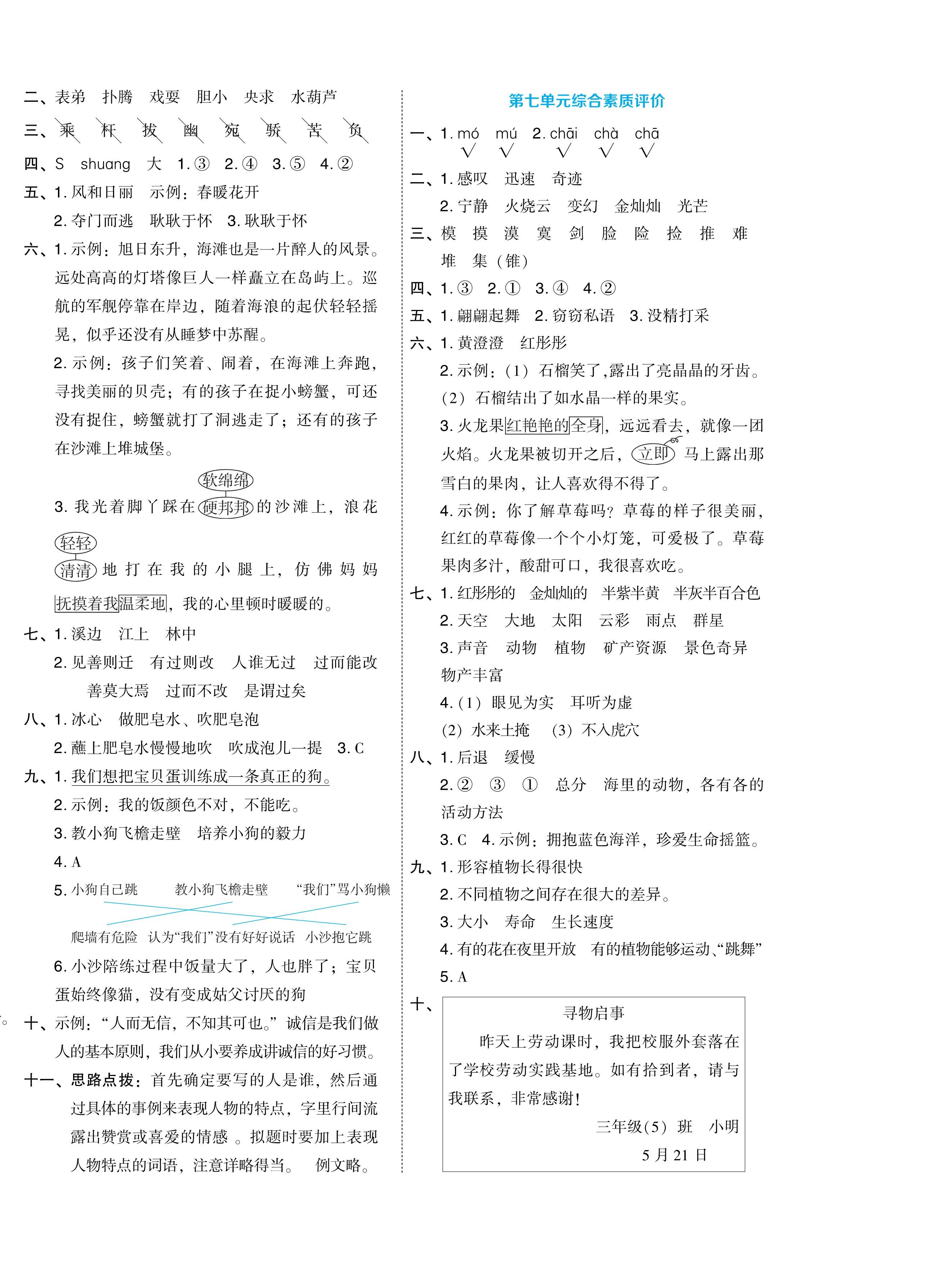 注:目前有些书本章节名称可能整理的还不是很完善,但都是按照顺序排列的,请同学们按照顺序仔细查找。练习册 2024年好卷三年级语文下册人教版 答案主要是用来给同学们做完题方便对答案用的,请勿直接抄袭。