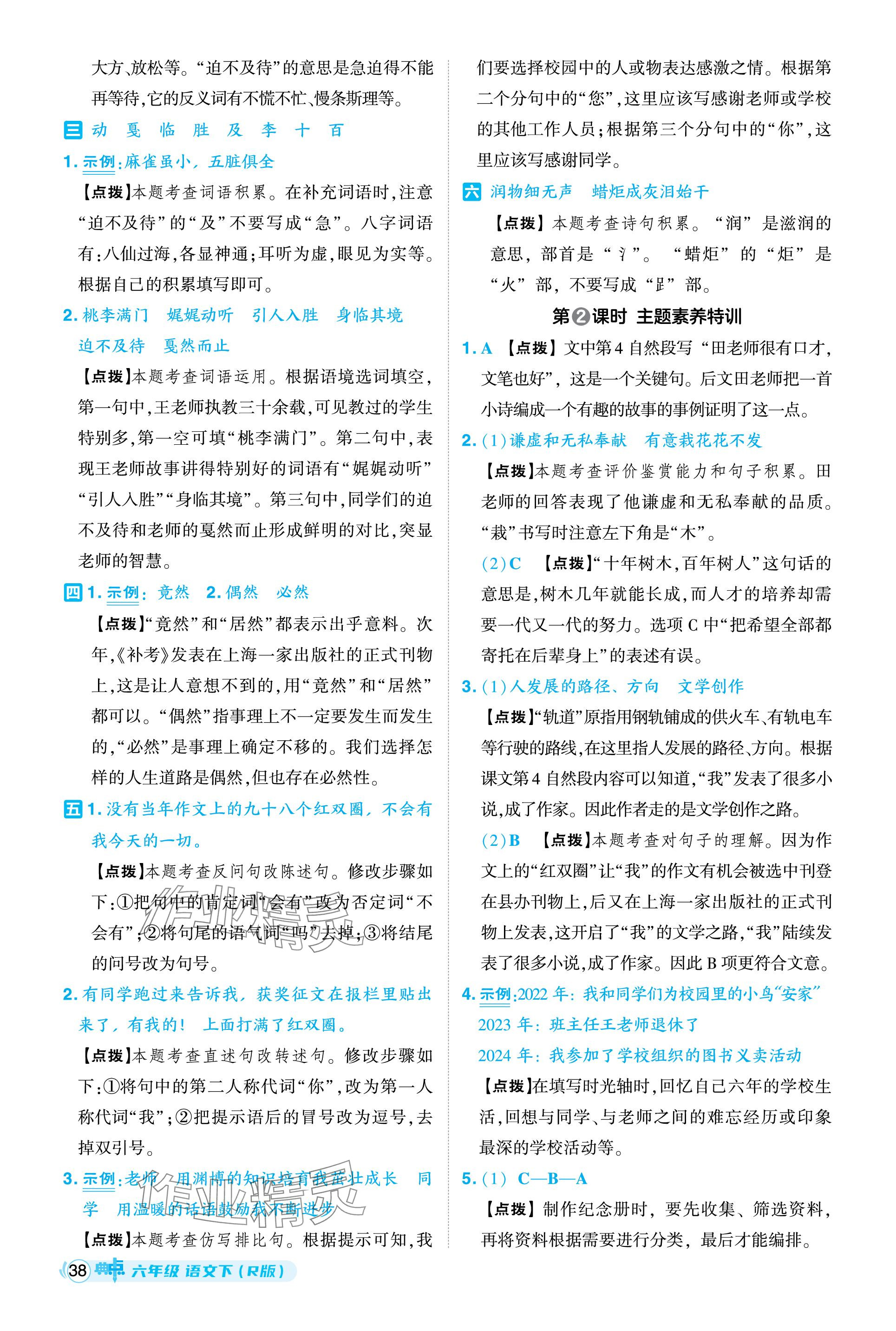注:目前有些书本章节名称可能整理的还不是很完善,但都是按照顺序排列的,请同学们按照顺序仔细查找。练习册 2024年综合应用创新题典中点六年级语文下册人教版吉林专用 答案主要是用来给同学们做完题方便对答案用的,请勿直接抄袭。