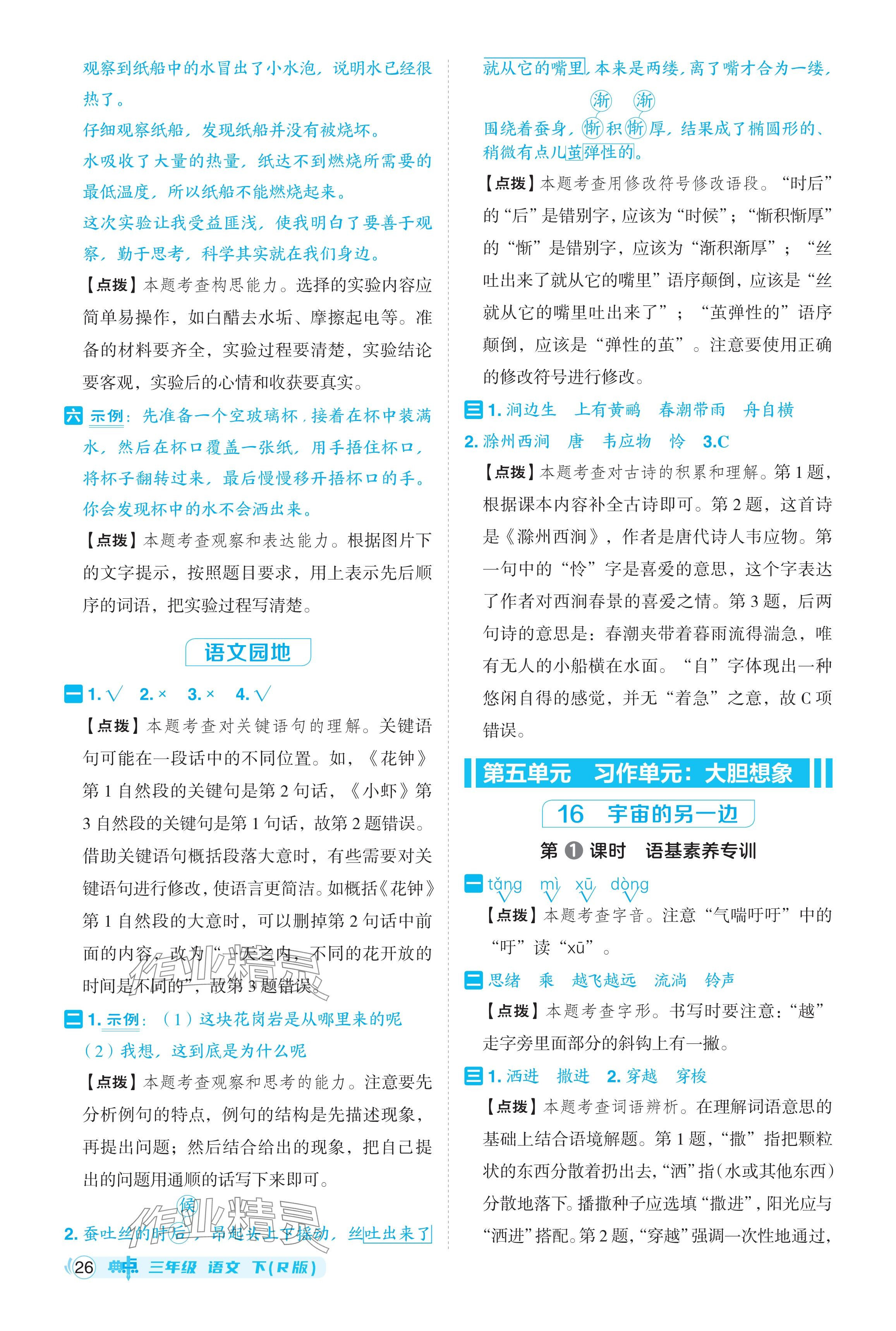 注:目前有些书本章节名称可能整理的还不是很完善,但都是按照顺序排列的,请同学们按照顺序仔细查找。练习册 2024年综合应用创新题典中点三年级语文下册人教版湖北专用 答案主要是用来给同学们做完题方便对答案用的,请勿直接抄袭。
