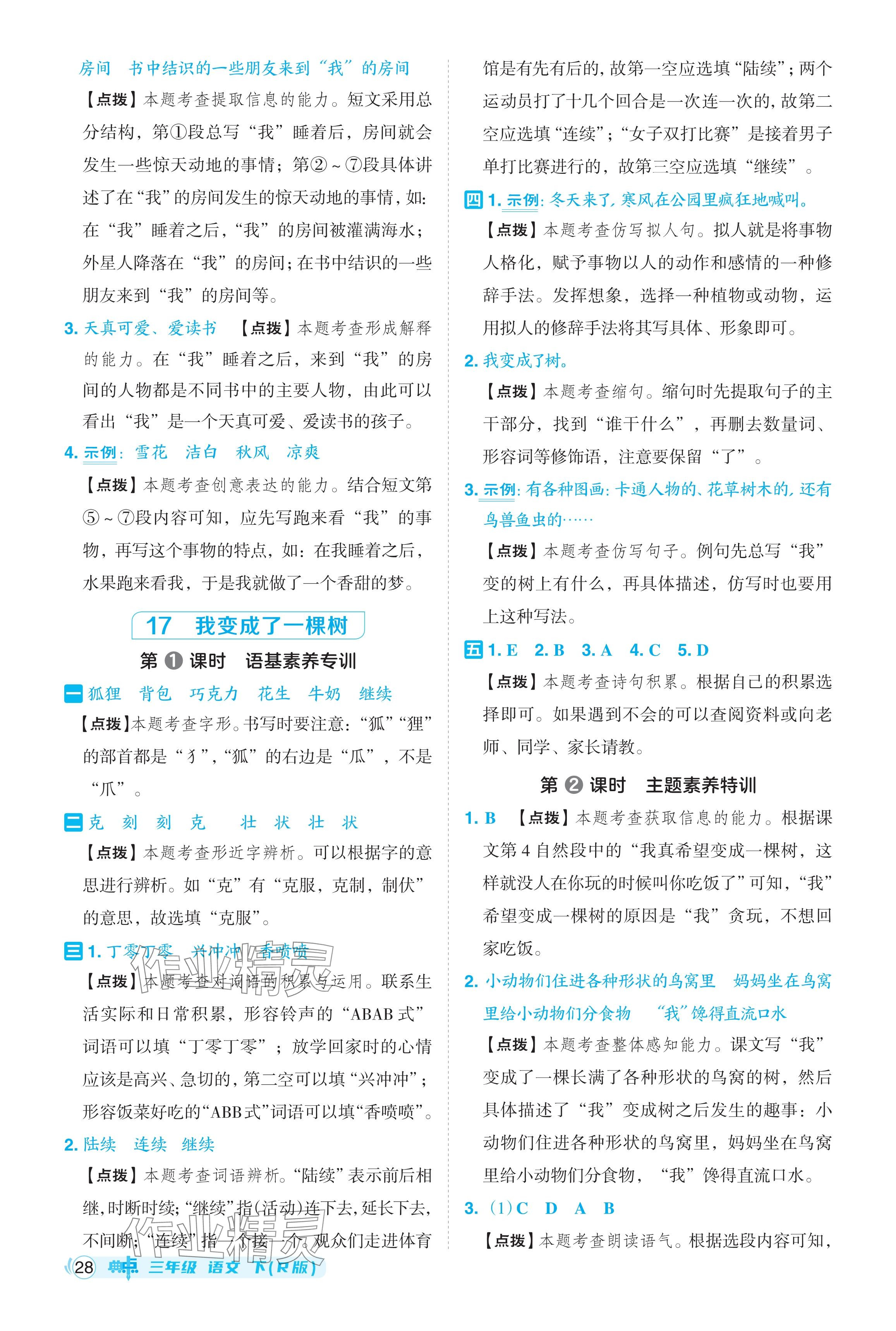 注:目前有些书本章节名称可能整理的还不是很完善,但都是按照顺序排列的,请同学们按照顺序仔细查找。练习册 2024年综合应用创新题典中点三年级语文下册人教版湖北专用 答案主要是用来给同学们做完题方便对答案用的,请勿直接抄袭。