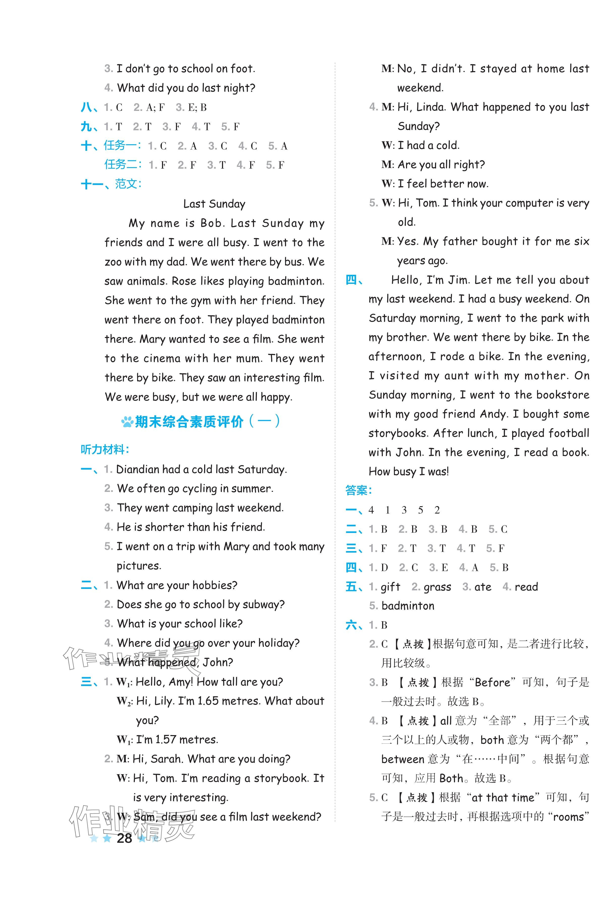注:目前有些书本章节名称可能整理的还不是很完善,但都是按照顺序排列的,请同学们按照顺序仔细查找。练习册 2024年好卷六年级英语下册人教版 答案主要是用来给同学们做完题方便对答案用的,请勿直接抄袭。