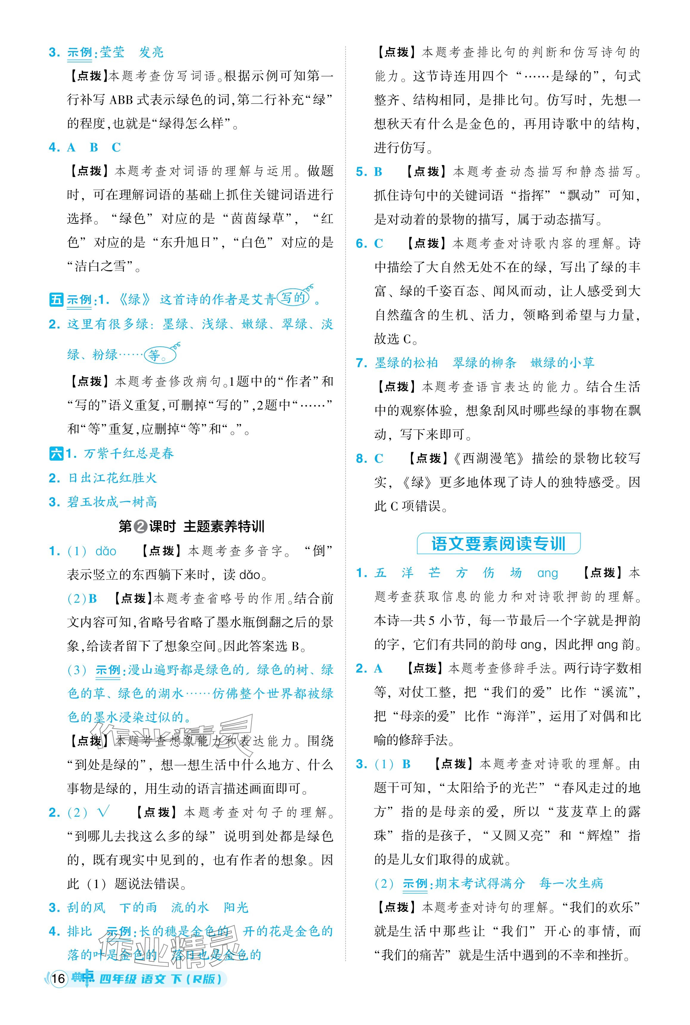 注:目前有些书本章节名称可能整理的还不是很完善,但都是按照顺序排列的,请同学们按照顺序仔细查找。练习册 2024年综合应用创新题典中点四年级语文下册人教版河北专用 答案主要是用来给同学们做完题方便对答案用的,请勿直接抄袭。