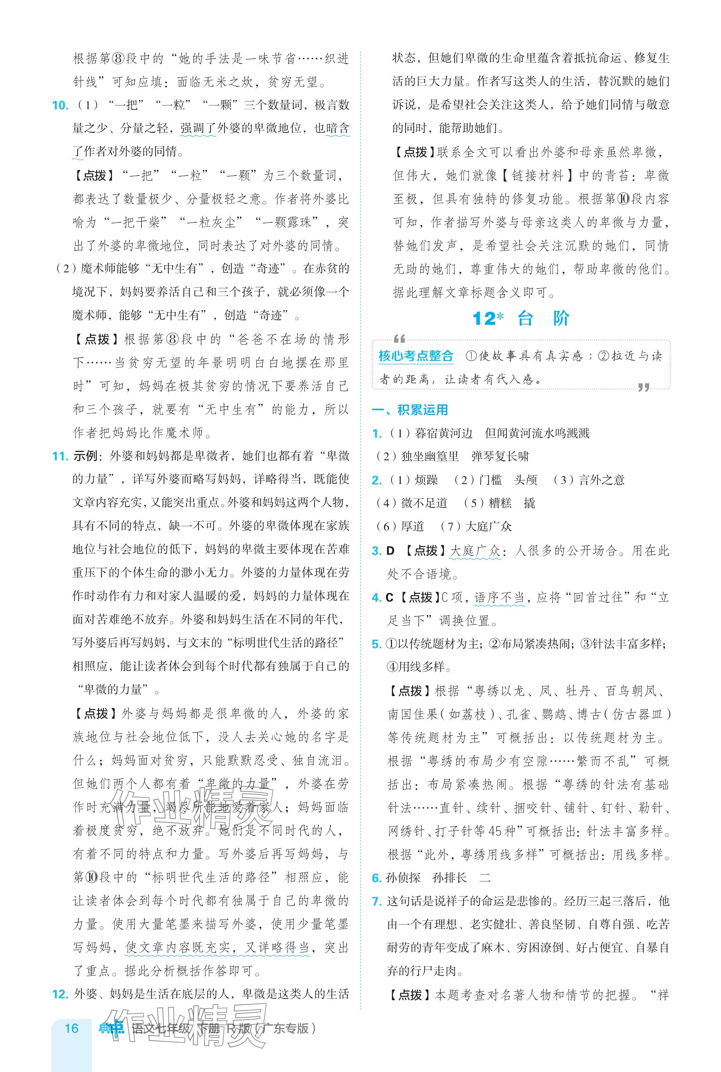 注:目前有些书本章节名称可能整理的还不是很完善,但都是按照顺序排列的,请同学们按照顺序仔细查找。练习册 2024年综合应用创新题典中点七年级语文下册人教版广东专用 答案主要是用来给同学们做完题方便对答案用的,请勿直接抄袭。