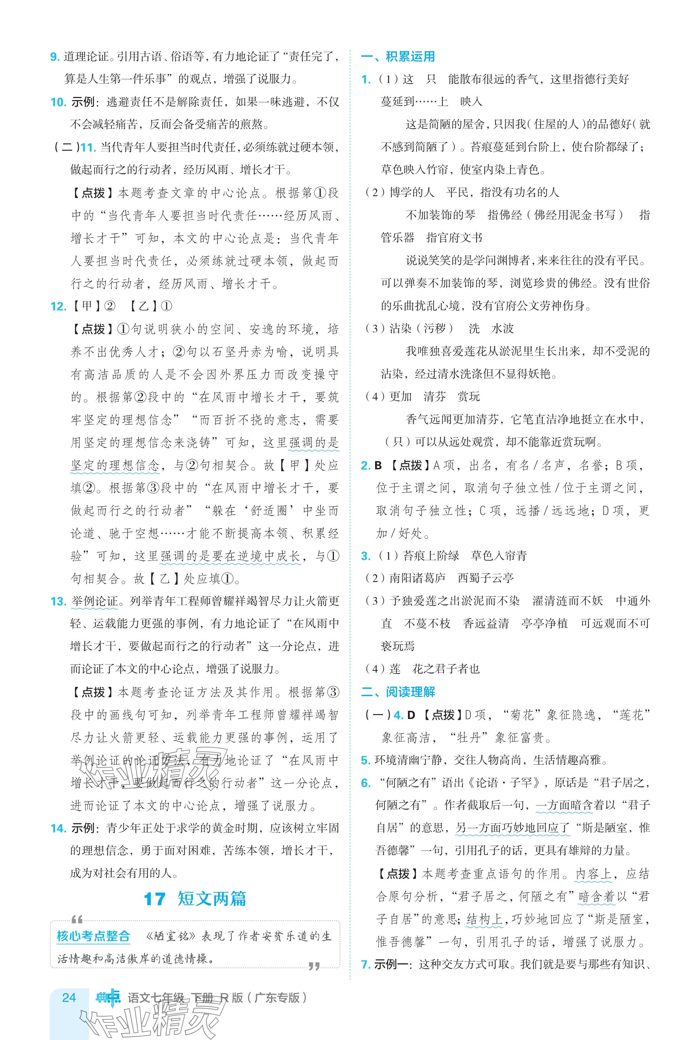 2024年综合应用创新题典中点七年级语文下册人教版广东专用