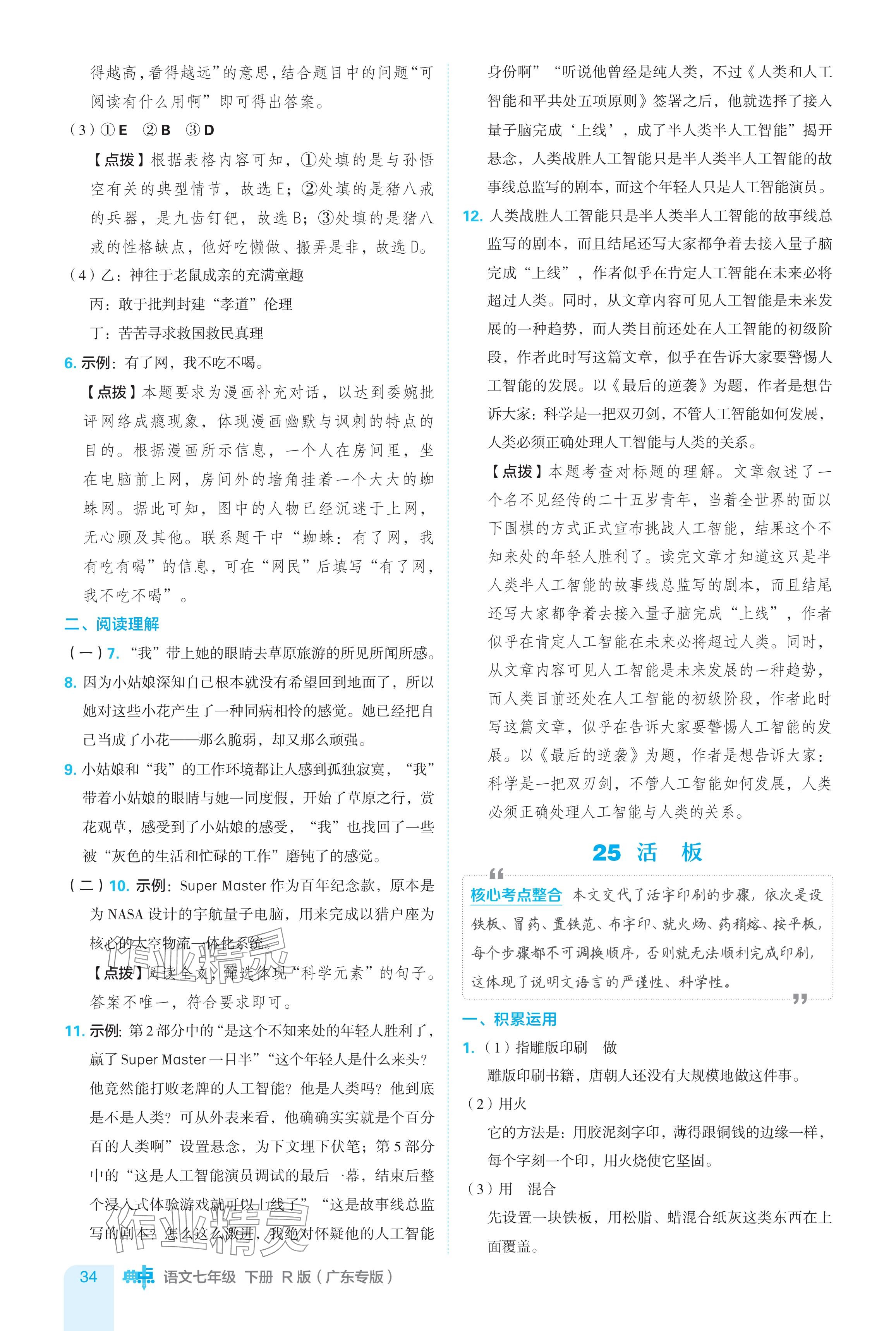 2024年综合应用创新题典中点七年级语文下册人教版广东专用