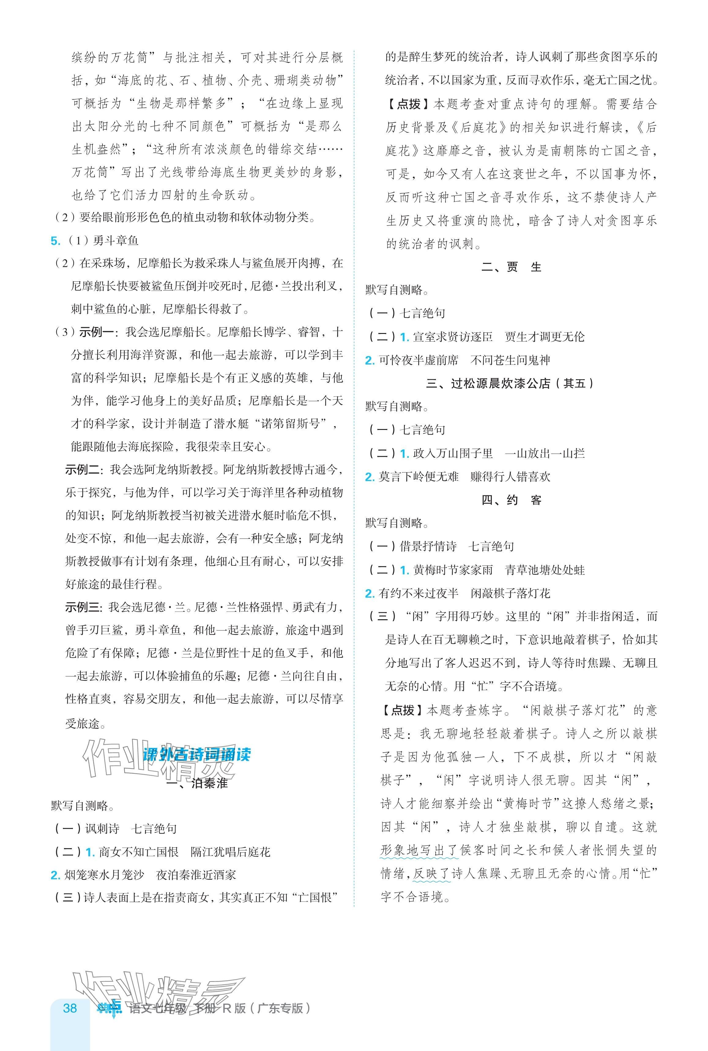 注:目前有些书本章节名称可能整理的还不是很完善,但都是按照顺序排列的,请同学们按照顺序仔细查找。练习册 2024年综合应用创新题典中点七年级语文下册人教版广东专用 答案主要是用来给同学们做完题方便对答案用的,请勿直接抄袭。