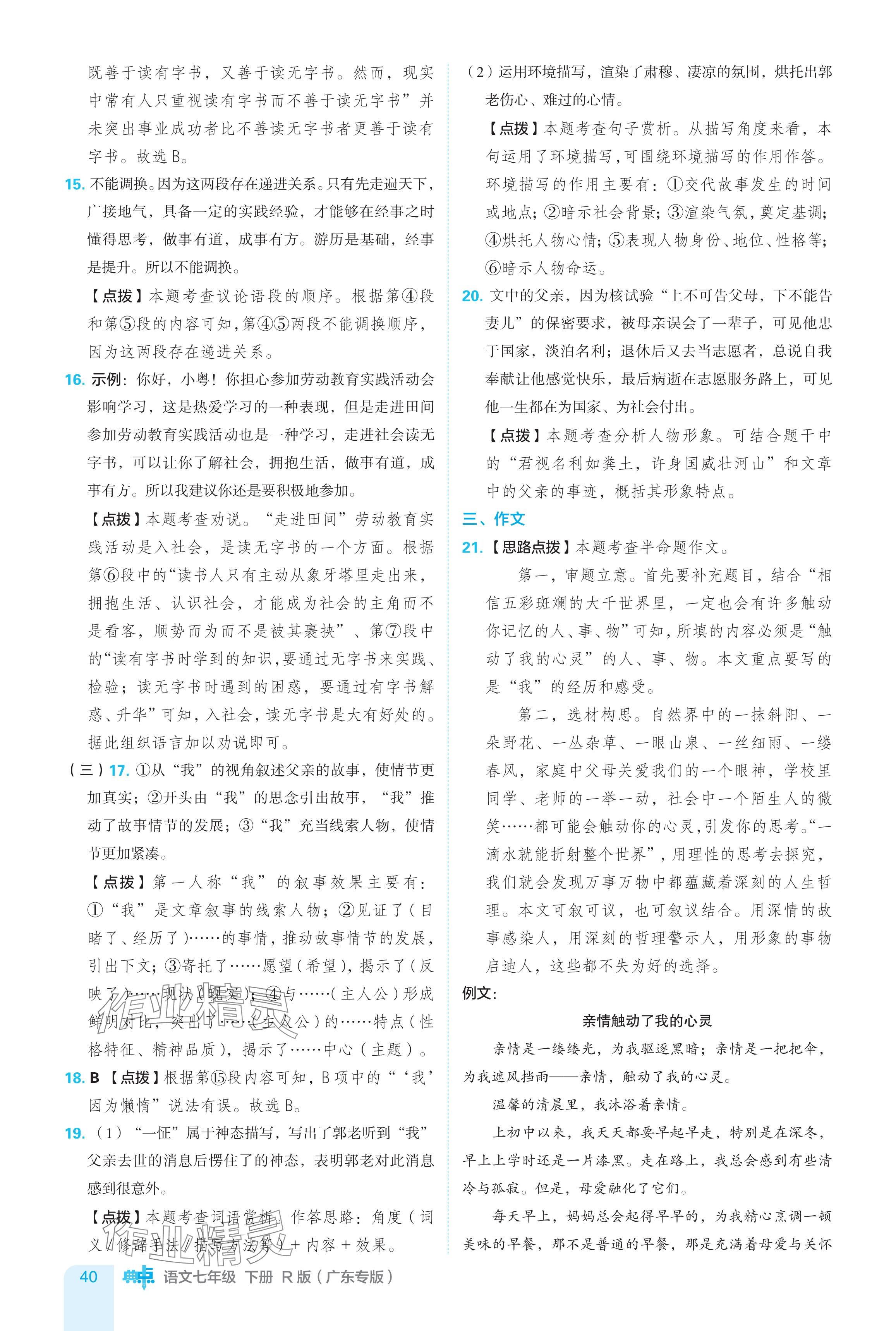 注:目前有些书本章节名称可能整理的还不是很完善,但都是按照顺序排列的,请同学们按照顺序仔细查找。练习册 2024年综合应用创新题典中点七年级语文下册人教版广东专用 答案主要是用来给同学们做完题方便对答案用的,请勿直接抄袭。