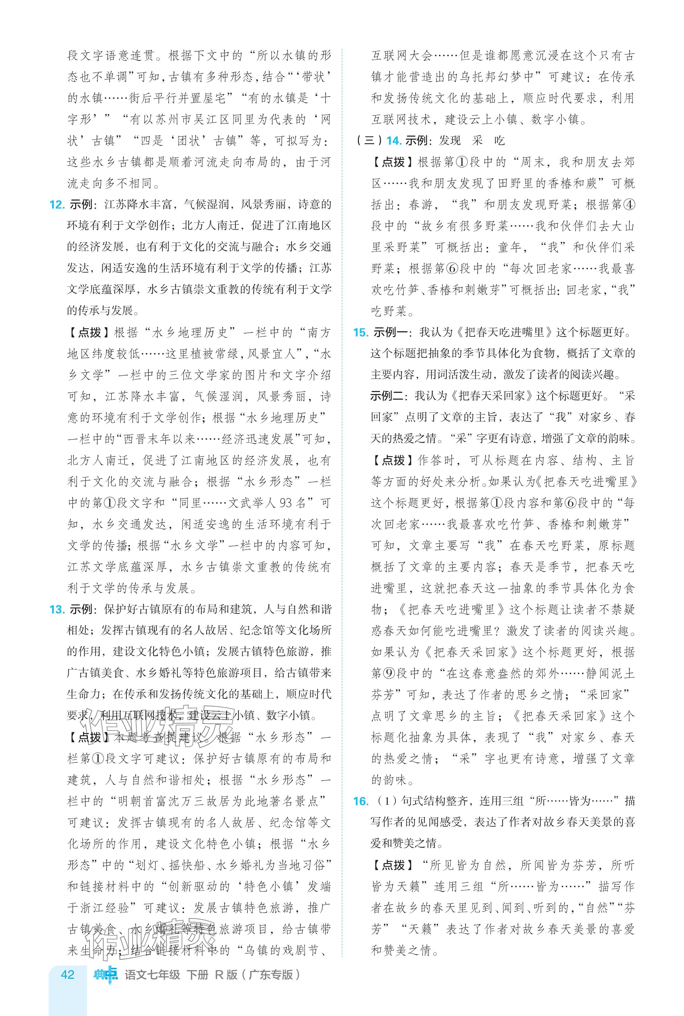 注:目前有些书本章节名称可能整理的还不是很完善,但都是按照顺序排列的,请同学们按照顺序仔细查找。练习册 2024年综合应用创新题典中点七年级语文下册人教版广东专用 答案主要是用来给同学们做完题方便对答案用的,请勿直接抄袭。