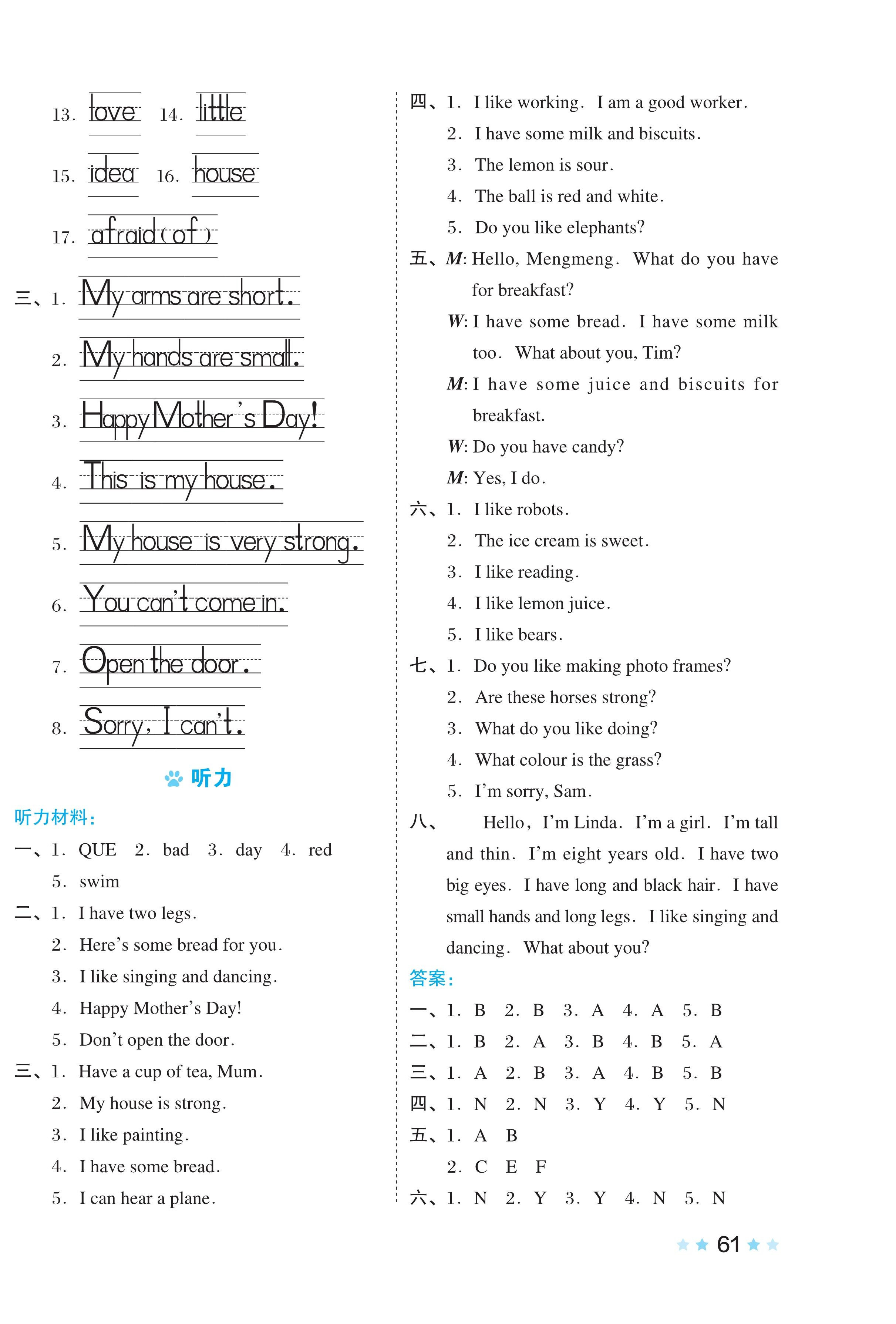 注:目前有些书本章节名称可能整理的还不是很完善,但都是按照顺序排列的,请同学们按照顺序仔细查找。练习册 2024年好卷三年级英语下册沪教版 答案主要是用来给同学们做完题方便对答案用的,请勿直接抄袭。