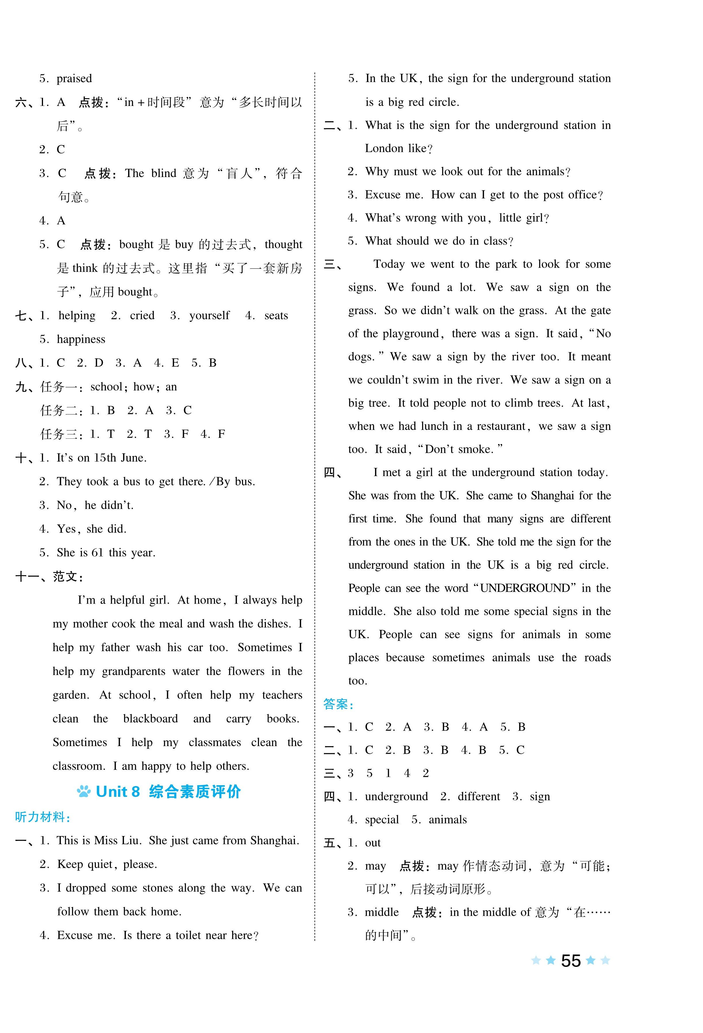 注:目前有些书本章节名称可能整理的还不是很完善,但都是按照顺序排列的,请同学们按照顺序仔细查找。练习册 2024年好卷六年级英语下册沪教版 答案主要是用来给同学们做完题方便对答案用的,请勿直接抄袭。