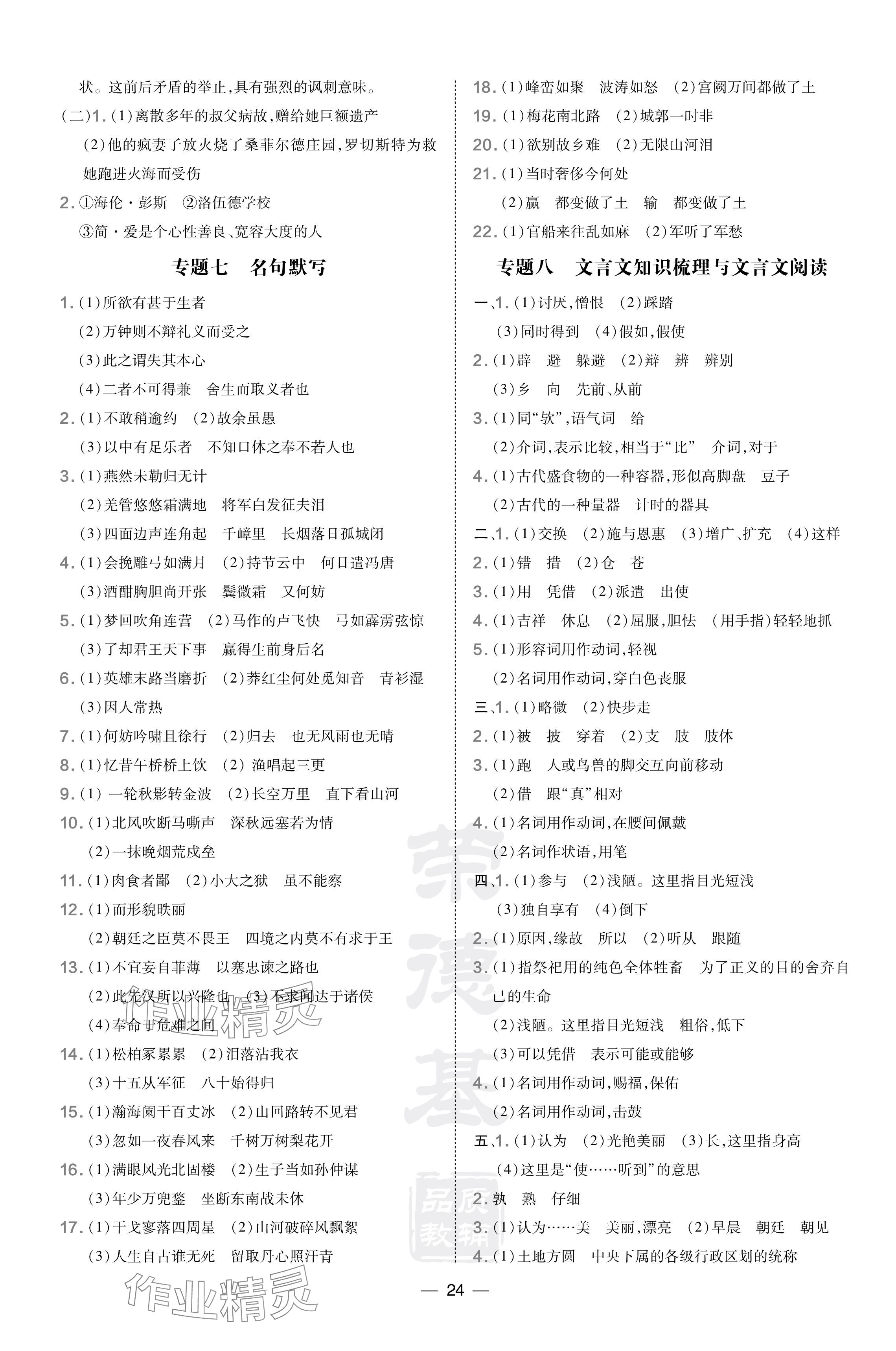 注:目前有些书本章节名称可能整理的还不是很完善,但都是按照顺序排列的,请同学们按照顺序仔细查找。练习册 2024年点拨训练九年级语文下册人教版吉林专版 答案主要是用来给同学们做完题方便对答案用的,请勿直接抄袭。