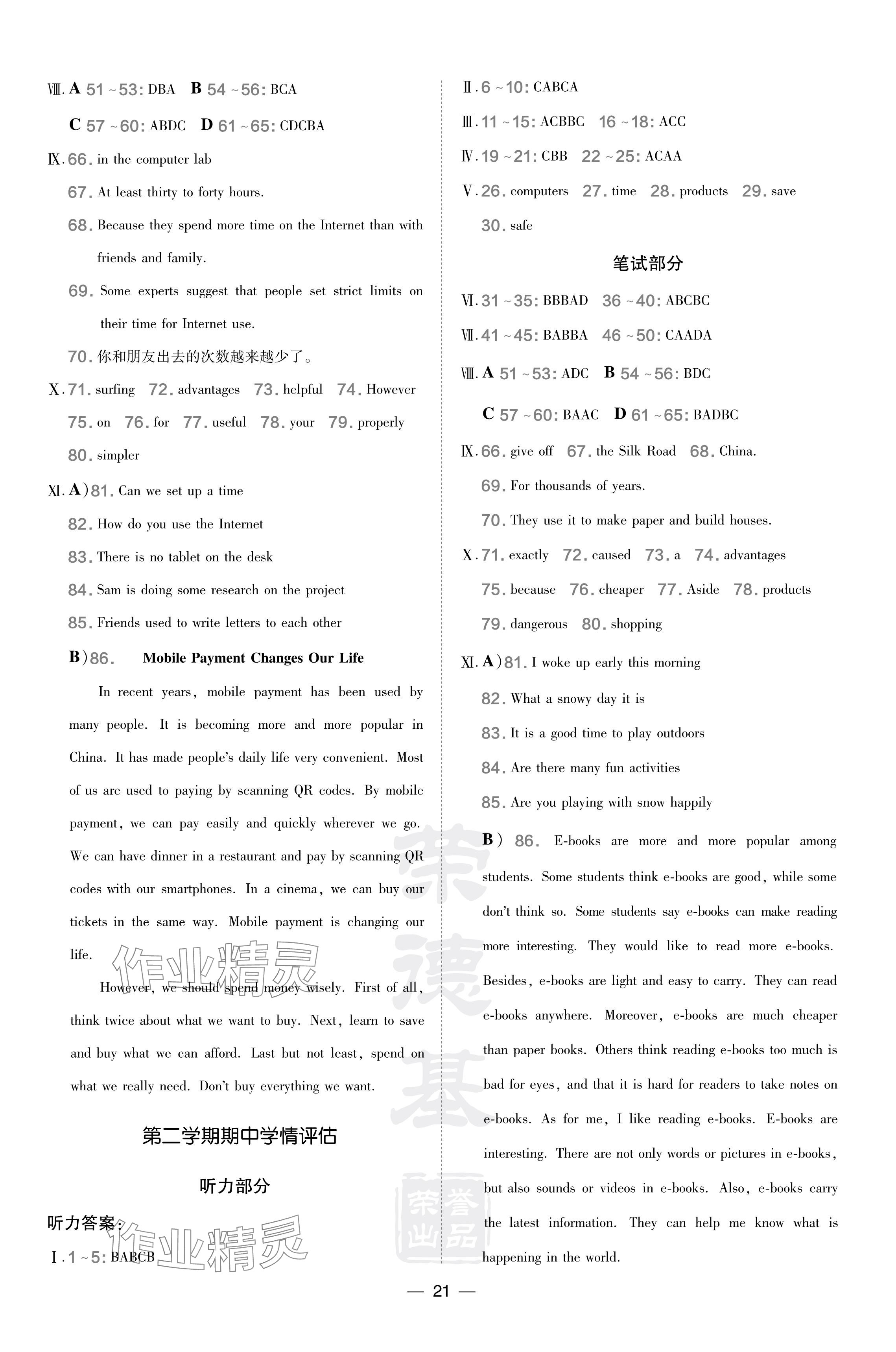 注:目前有些书本章节名称可能整理的还不是很完善,但都是按照顺序排列的,请同学们按照顺序仔细查找。练习册 2024年点拨训练八年级英语下册冀教版 答案主要是用来给同学们做完题方便对答案用的,请勿直接抄袭。