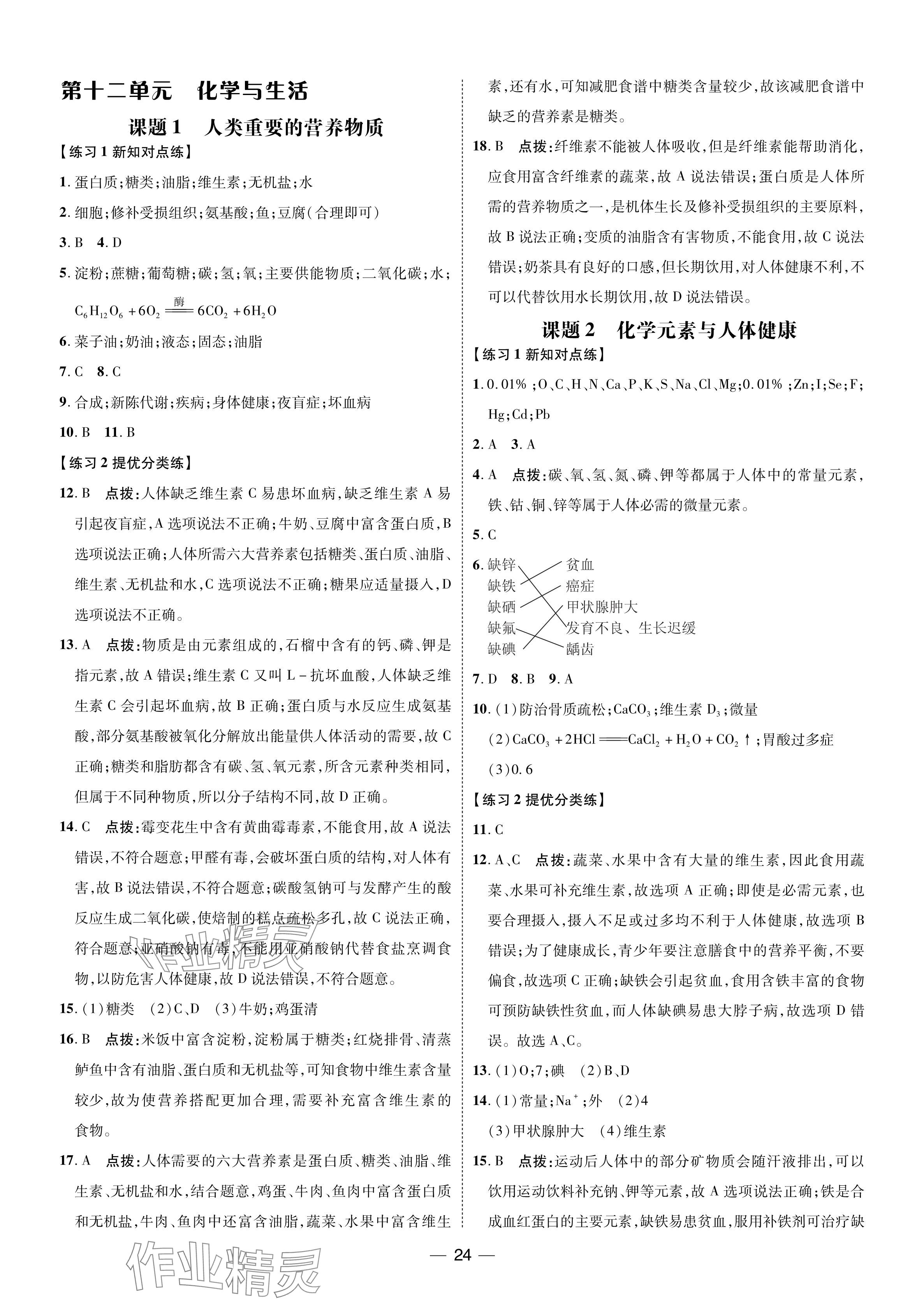 注:目前有些书本章节名称可能整理的还不是很完善,但都是按照顺序排列的,请同学们按照顺序仔细查找。练习册 2024年点拨训练九年级化学下册人教版福建专版 答案主要是用来给同学们做完题方便对答案用的,请勿直接抄袭。