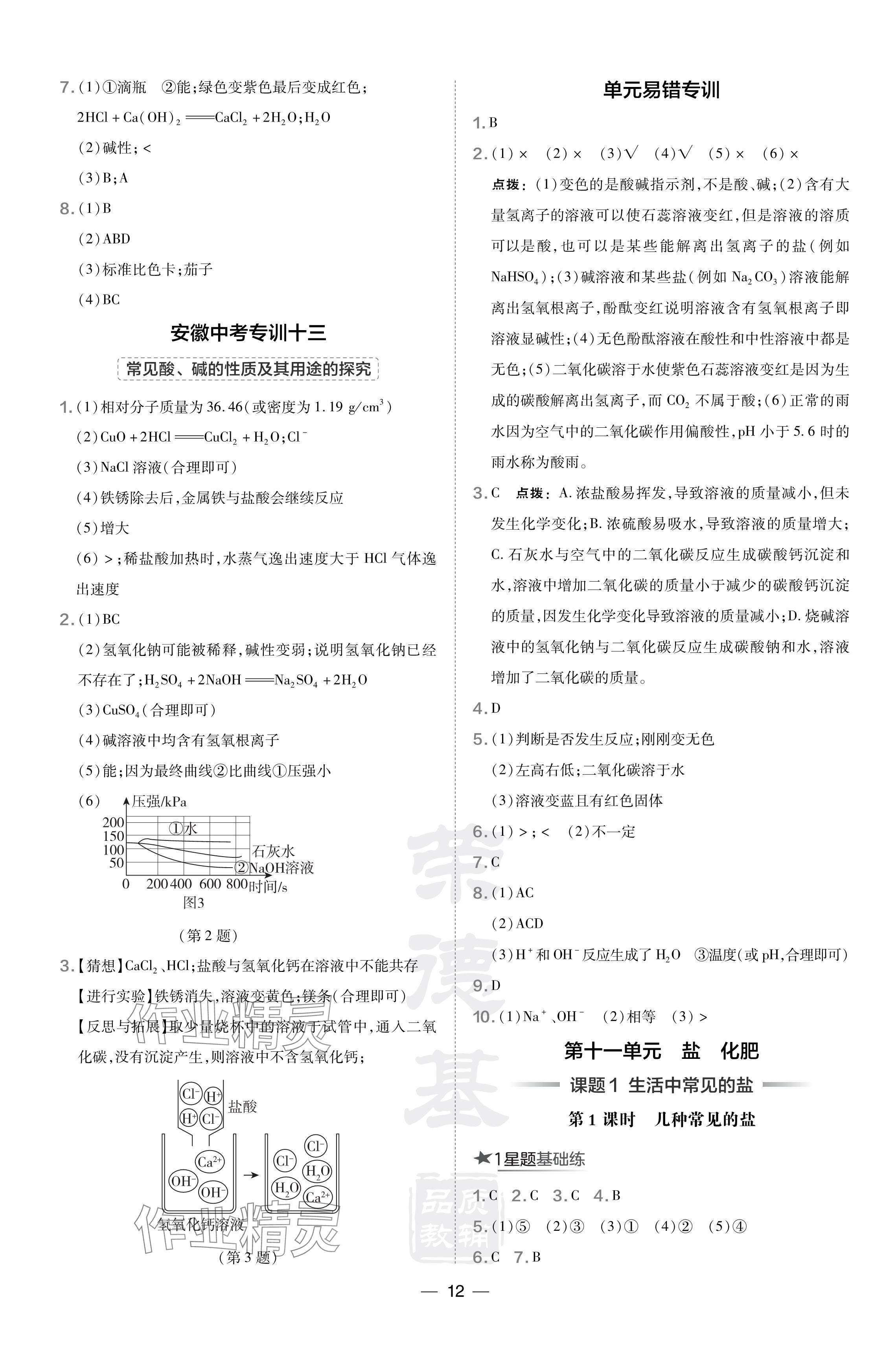 注:目前有些书本章节名称可能整理的还不是很完善,但都是按照顺序排列的,请同学们按照顺序仔细查找。练习册 2024年点拨训练九年级化学下册人教版安徽专版 答案主要是用来给同学们做完题方便对答案用的,请勿直接抄袭。