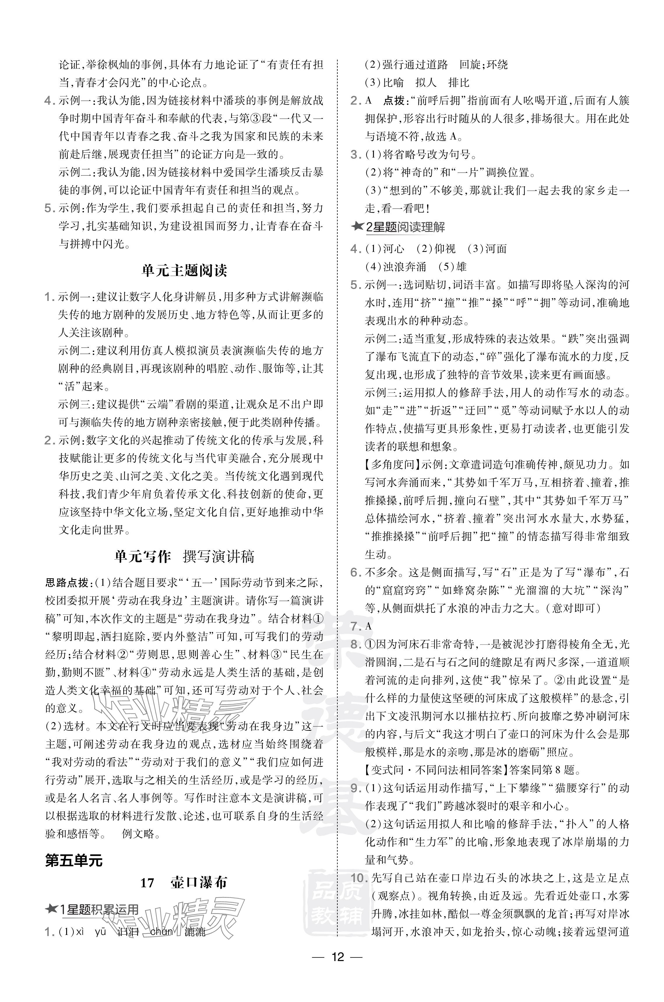 注:目前有些书本章节名称可能整理的还不是很完善,但都是按照顺序排列的,请同学们按照顺序仔细查找。练习册 2024年点拨训练八年级语文下册人教版安徽专版 答案主要是用来给同学们做完题方便对答案用的,请勿直接抄袭。