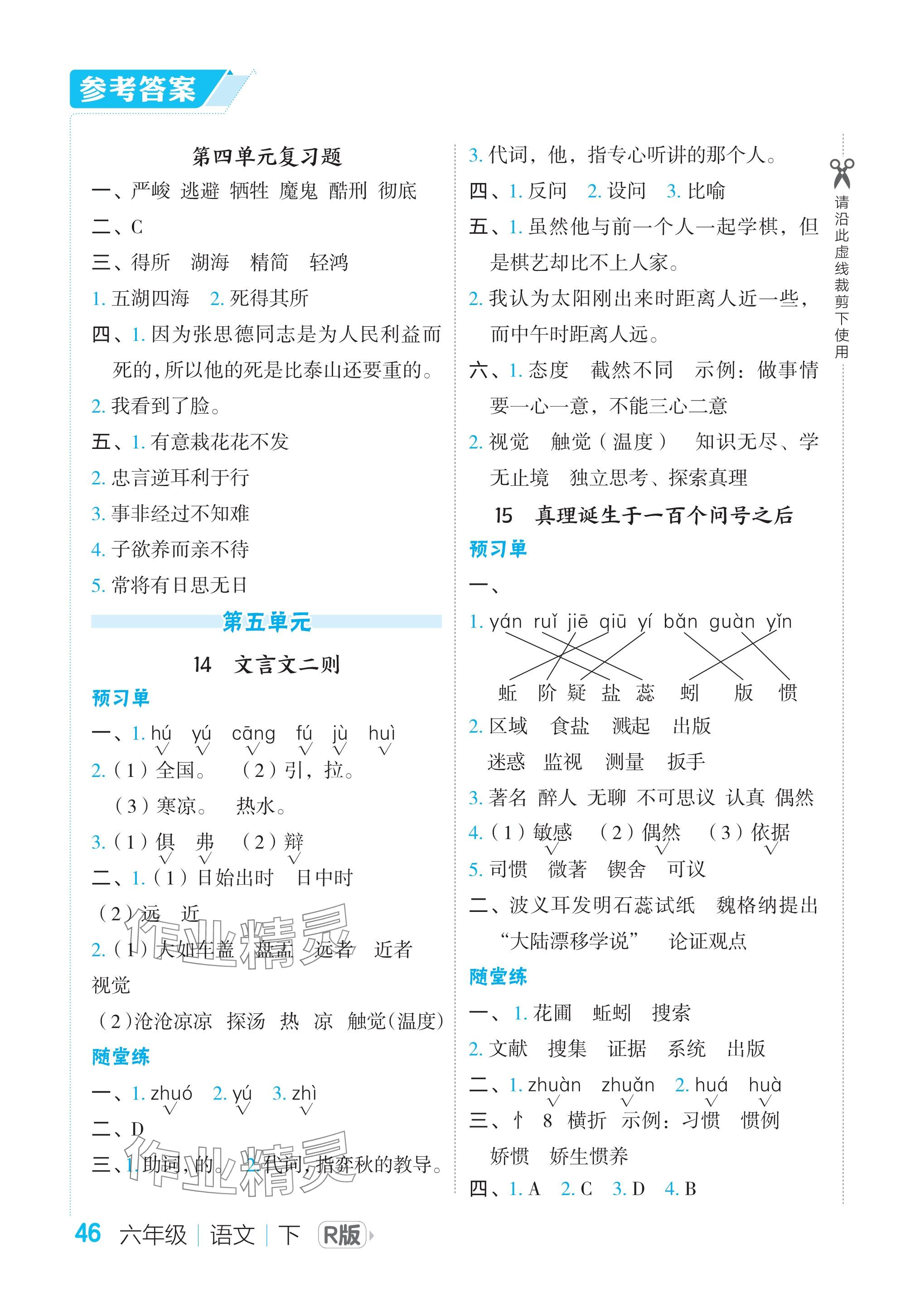 注:目前有些书本章节名称可能整理的还不是很完善,但都是按照顺序排列的,请同学们按照顺序仔细查找。练习册 2024年特高级教师点拨六年级语文下册人教版山东专版 答案主要是用来给同学们做完题方便对答案用的,请勿直接抄袭。